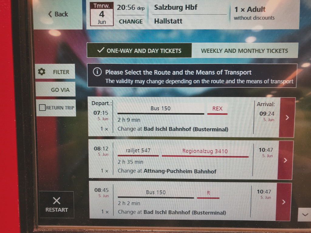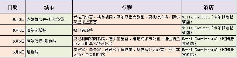 【 萨尔茨堡 ←→ 哈尔施塔特 、 萨尔茨堡 — 维也纳 、 维也纳 — 布达佩斯 :】