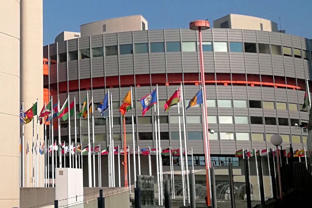 岛中央有个地铁站,可以坐一站去联合国大楼的,趁时间还早就想顺便参观一下联合国总部。可到了大门外没找着参观入口,然后又绕了一圈去找也没找着,在回程的地铁口处拍了几张N国国旗的相片,算是至此一游了。回来后通过和朋友聊天才知道入口在哪里,只不过当时我以为是工作人员的入口而已(下图GATE 1)。因为某人烟瘾犯了,被逼在出地铁口的时候买了一个2.5欧的打火机,因此特意让某人在便利店门口拿着打火机照了张相片,以此留念。