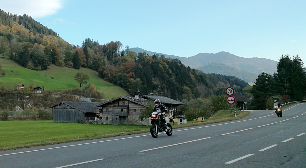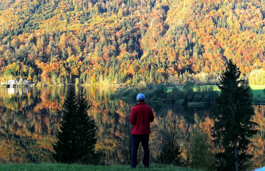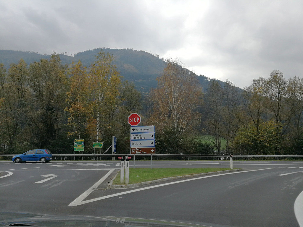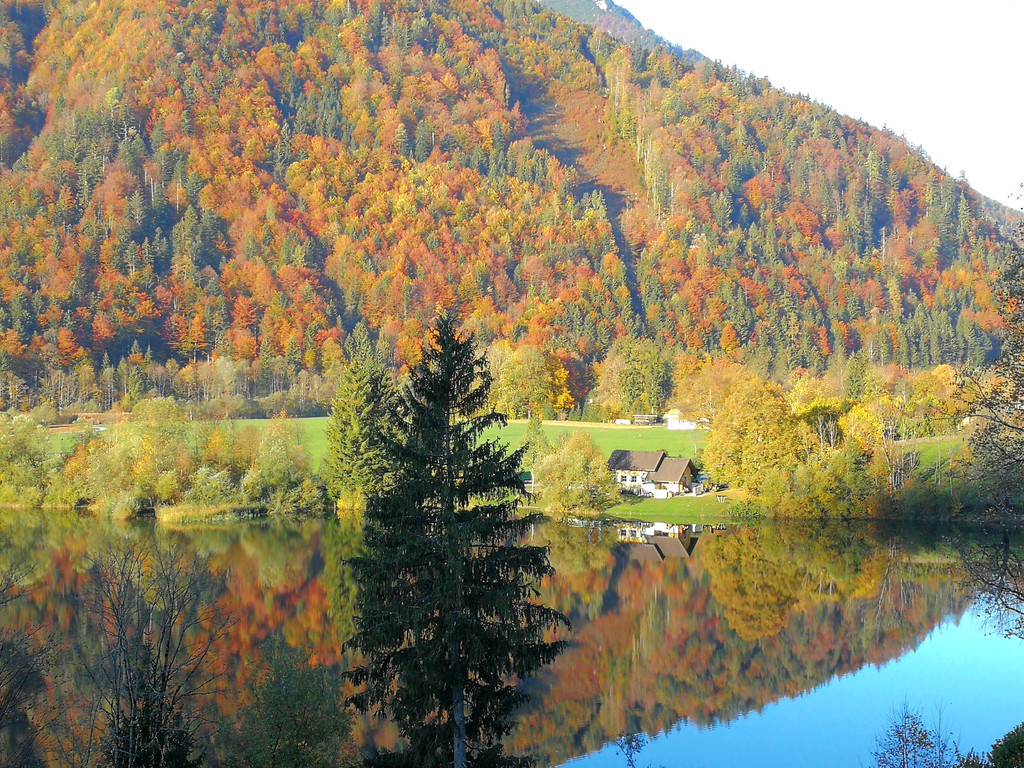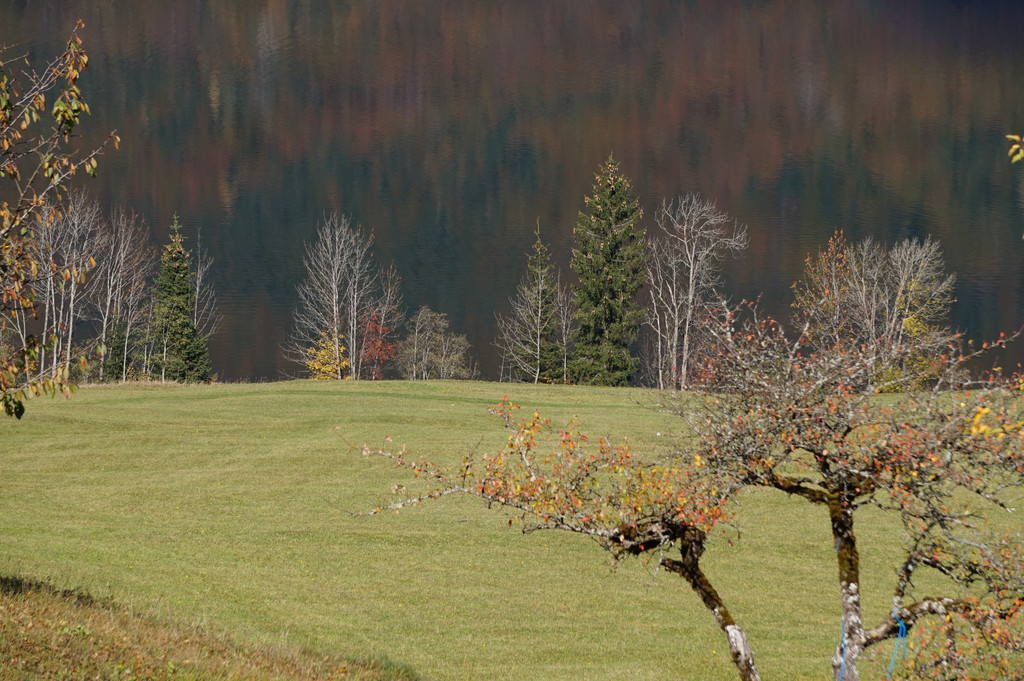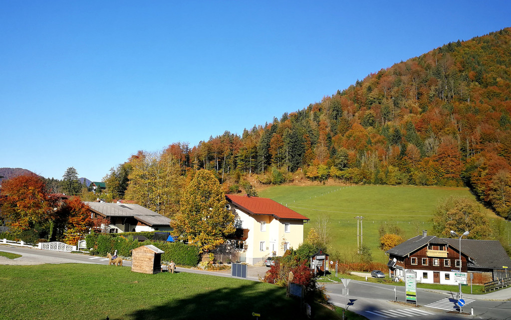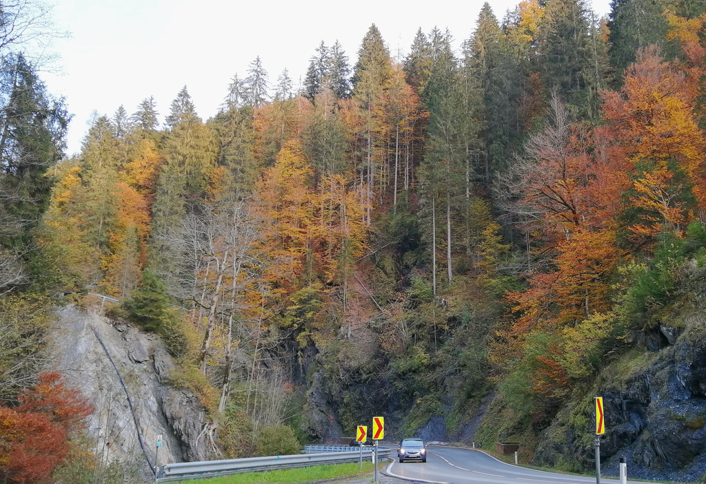 在湖边看了一会景色后又转到阿特湖去了,发现这湖沿途能停车的地方不多,最后车子开了好久也只能隔着人家的房子看湖景,比较没意思,就转头往今天目的地是皮森多夫(Piesendorf)去了。看了不少攻略,好多人建议不要走高速,然后我就找了一条观赏秋色的线路走。