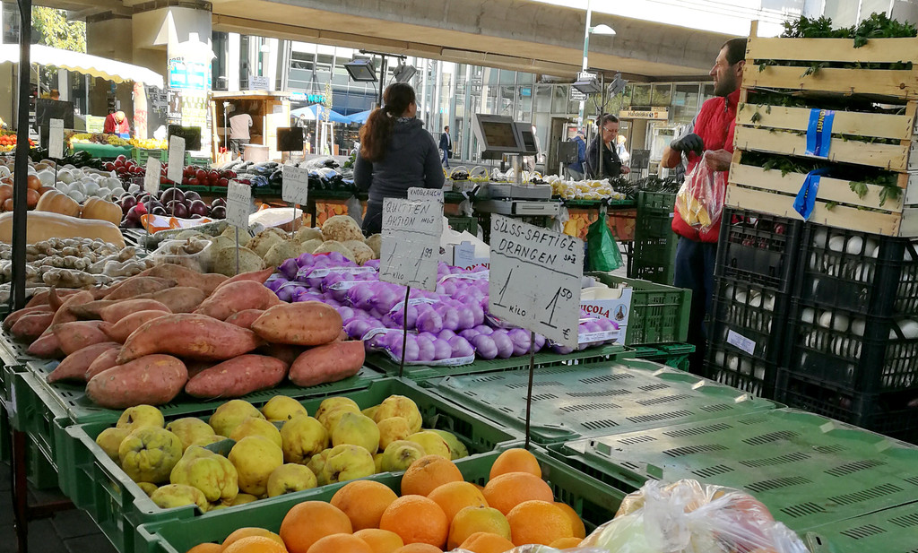 从联合国大楼坐地铁出站后,按谷歌指示走着回公寓,后来在一处见到有公交车站,想着也是直走的,不如坐两站公交了,体会一下当地公交的感觉。感觉最好的就是根本不用验票,十分方便。下车后某人硬是说还没到地方,就走到地铁口桥下那个亚洲摆摊市场去了,价格比超市的便宜些,但卖相就没超市的好了。再回到公寓已经差不多中午时分了,故决定回公寓吃完午饭下午再去市中心走马观花的逛一圈。