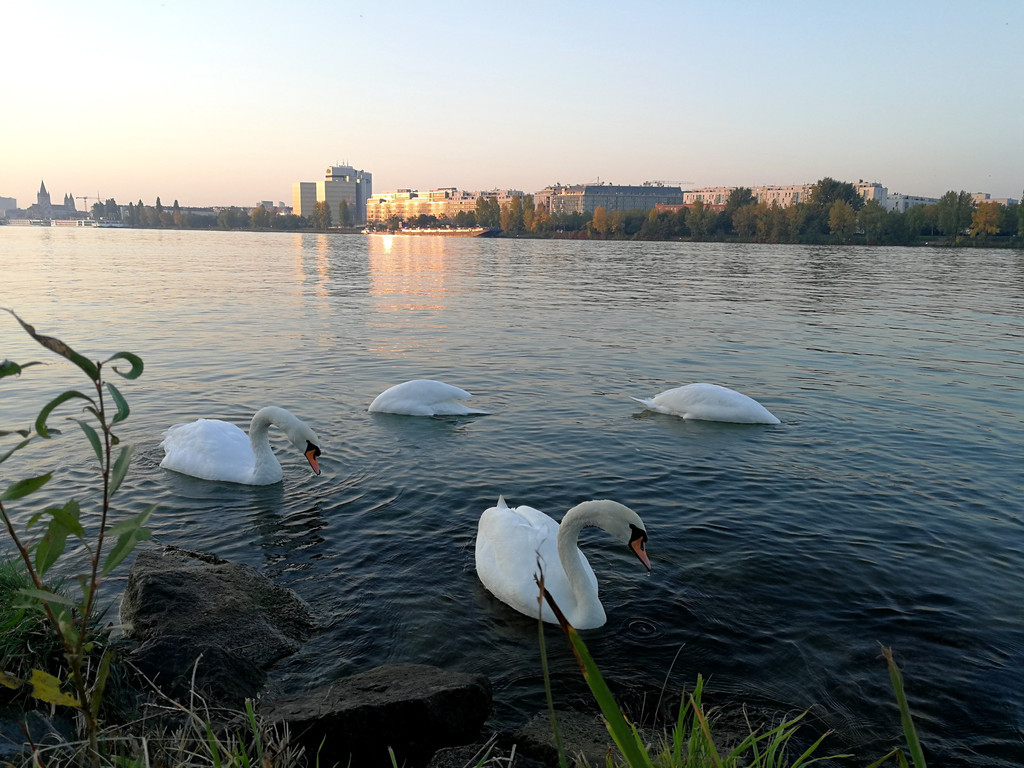12日早上天还没亮就醒了,因为我们住宿地点离河边很近,我们就将原计划上午美泉宫(茜茜公主的行宫)之行就变成多瑙河晨运了。多瑙河熟知是因为一曲【蓝色的多瑙河】,但真正到河边却没看到想像中的蓝色,不过河水却很清澈。跟着地图走到河边并过了一桥来到多瑙岛上,夏季很多人在这里游泳和水上活动。现在夏季已过,岛上的水上活动已经停止了,晨运的人也不多,显得很宁静。河边遇到一家四口的天鹅出来觅食,见到我们走近就马上游过来,估计是已经习惯了有人投喂,可惜我们没有准备面包之类的食物,在跟天鹅大眼瞪小眼了的同时,拍了不少特写。
