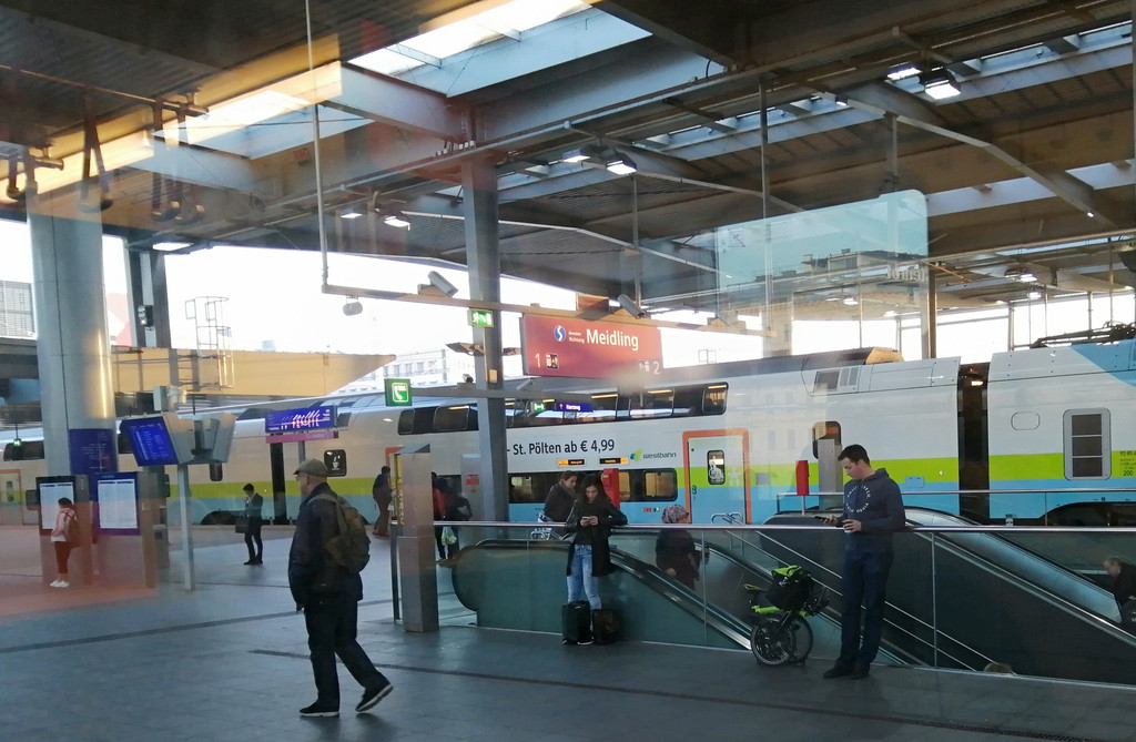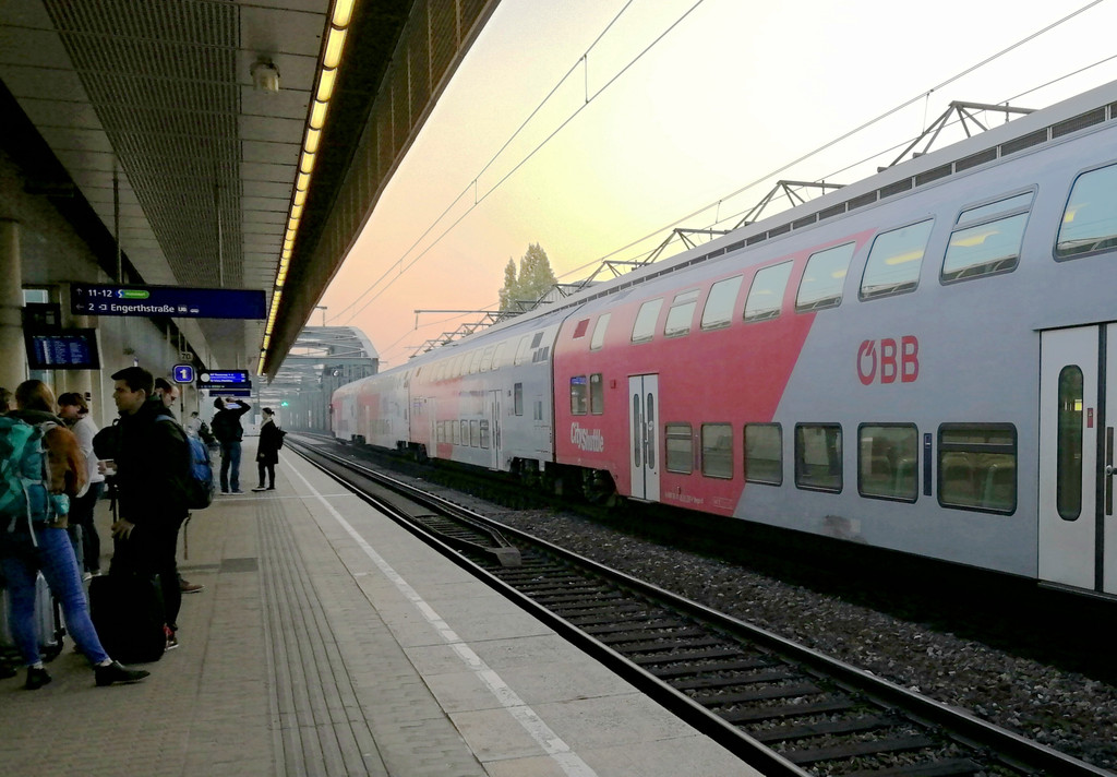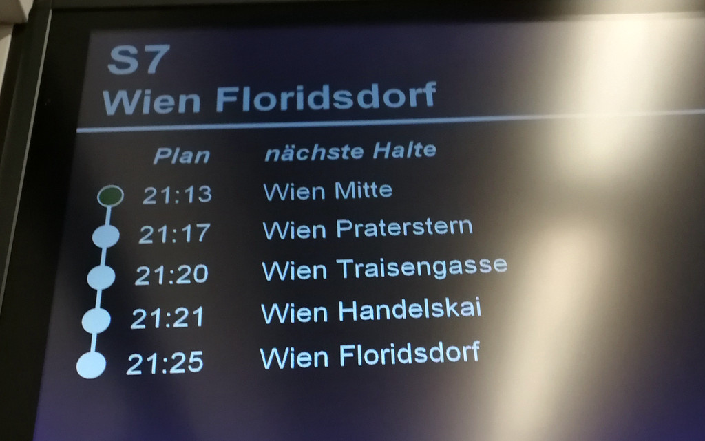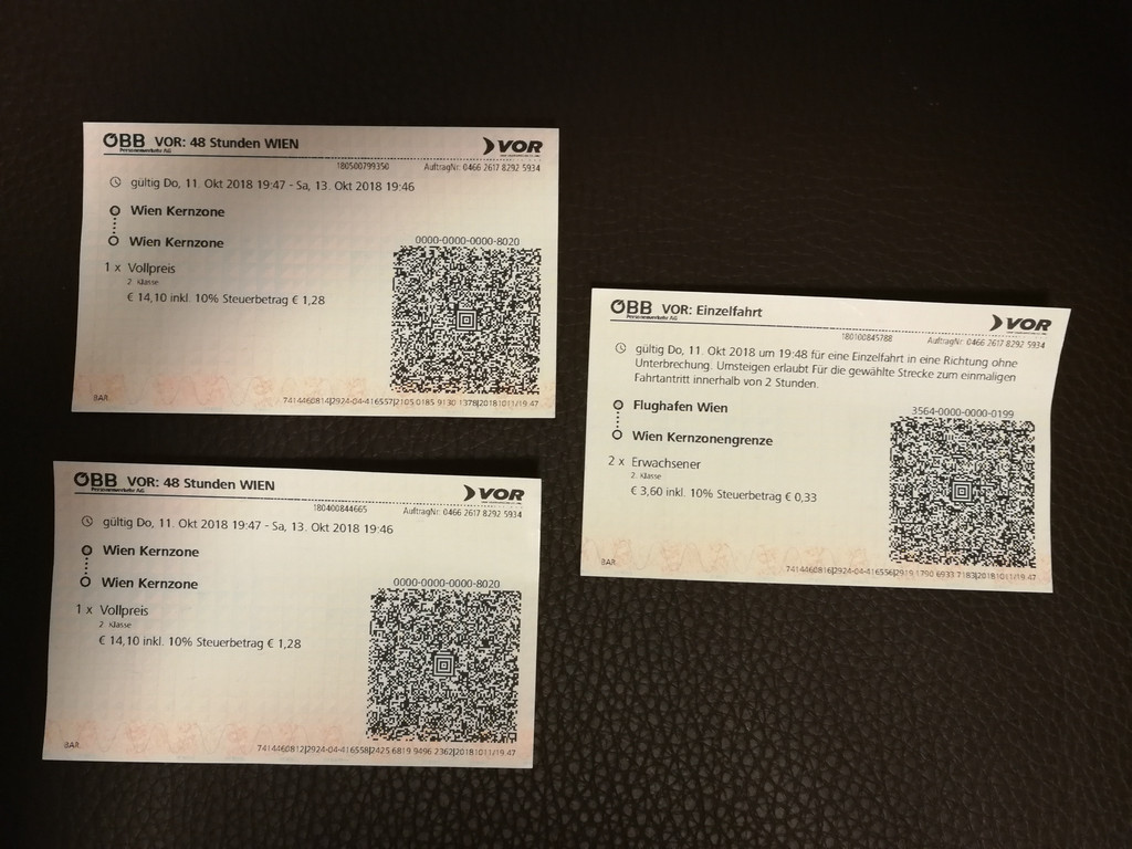 19:15到达维也纳机场后,过关速度比较快,虽然在网上看了机场攻略,但还是有些陌生感。在机场内的售票中心(出关后右边)买了2张维也纳市区48小时票和到达住宿地方的单程票后,就出了机场大门找S7轻轨去了。其实在售票中心旁边就有通道通往S7轻轨站台,按着指示走很快就到了。可是我们是出了机场大门(都是因为某人说要去抽烟的缘故)过马路再走到另外一出口下去找的S7,中间花了不少时间,周折到八点多才上了S7,看着屏幕报站,最后总算平安到达公寓了,这时已经是十点左右了。