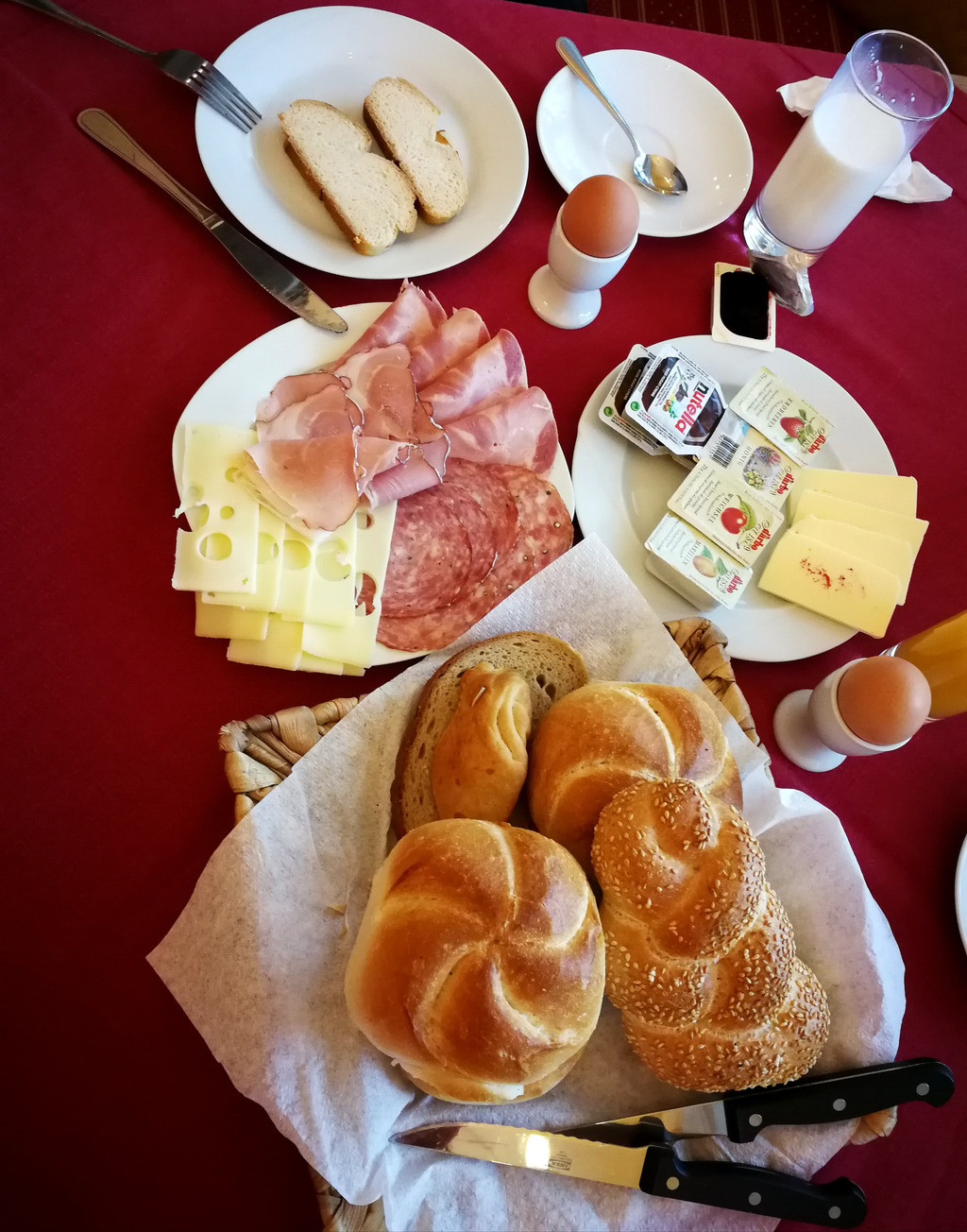 早上起床第一时间就跑去阳台看小镇风景去了,然后吃完自制早餐后就向滨湖采尔出发了。欧洲的公寓基本都有厨房的,早餐也是自己做的,感觉挺方便的。
