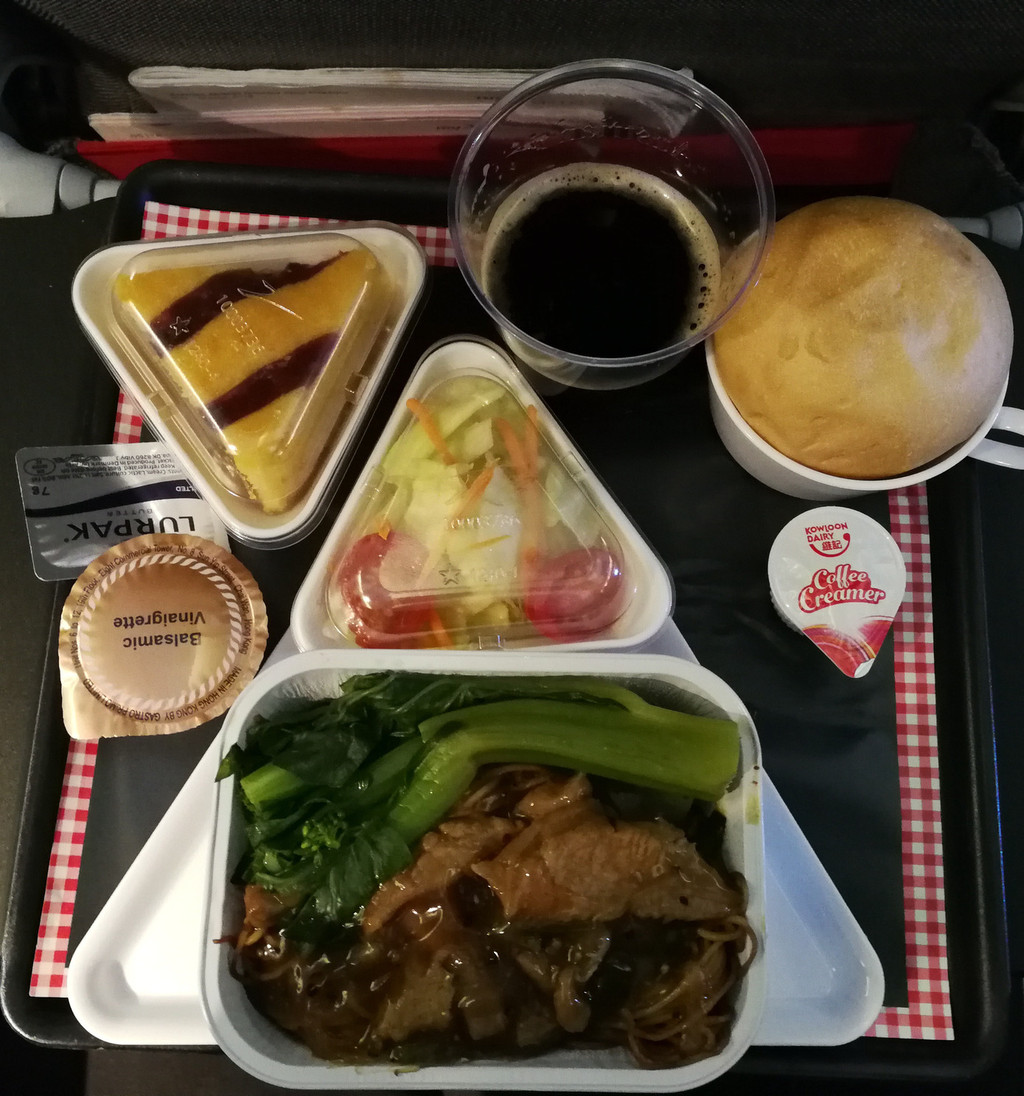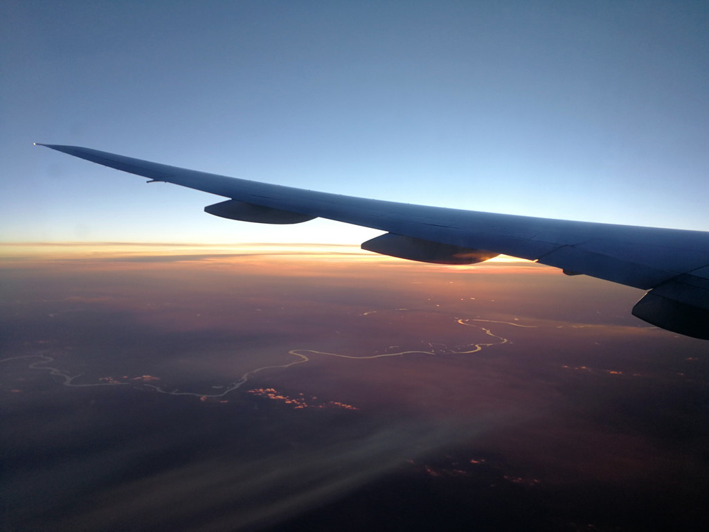 到香港沙田广场大概早上九点左右,然后和朋友在八楼的翠园喝了个早茶就坐41A去香港机场了。机场有两个航站,由于不知道奥地利航空公司在哪个航站,结果到T2下了,后来发现值机是在T1的。这次航班的第一餐居然有牛肉饭,是我喜欢吃的。在奥地利航空香港直飞维也纳12小时飞行中,只提供两餐,中间有些小零食吃吃。飞机上的电影和机翼下不知名的长河伴着日落,帮我打发了不少时间。