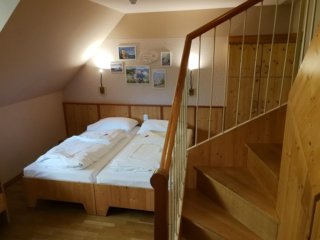 最后也只能订了备选的jufa hotel grundlsee(格伦德尔湖JUFA酒店),一家湖边旅馆。可能是人少,前台还给了一四人房间。这家旅馆景色其实也不错的,可能是因为太靠里面的,没入口处的几家出名。