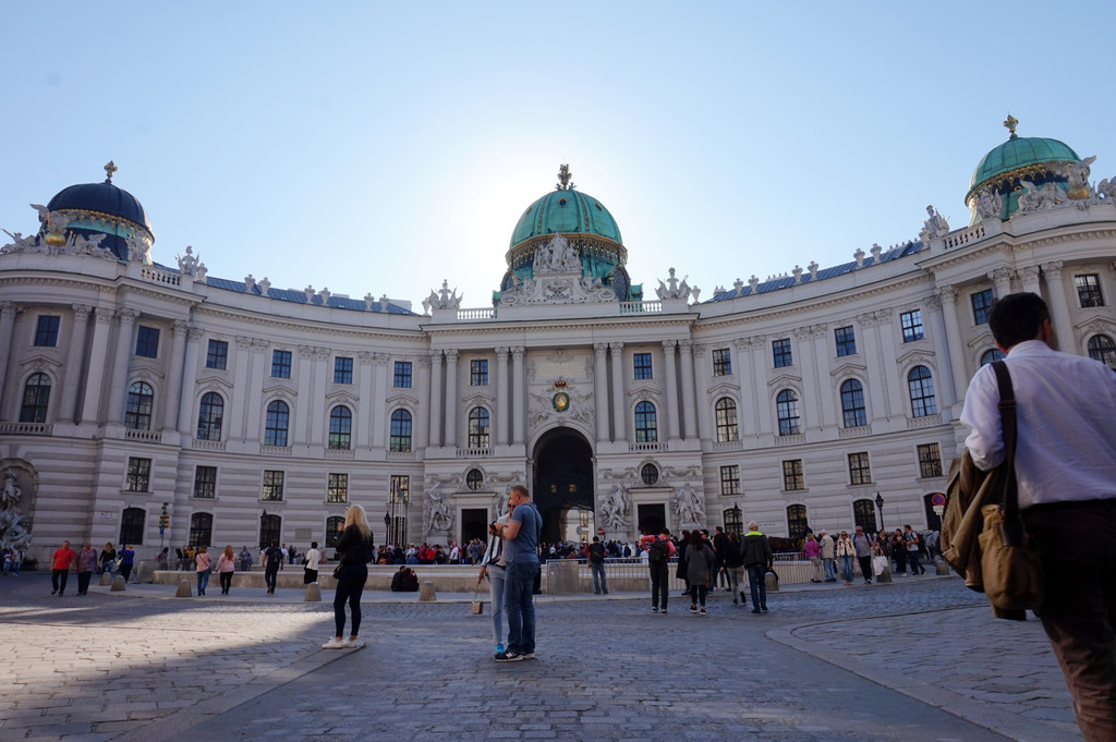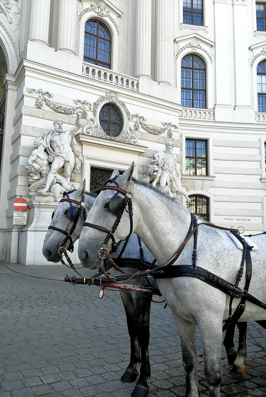 查地图附近的景点是金色大厅,可是按地图走到附近但还是没找着入口,后来就放弃往其他景点去了。每个景点之间的距离也不远,整个下午去了霍夫堡、圣斯蒂芬大教堂。霍夫堡门前好多马车供游人选择坐马车参观,不过因为太多马在,所以门口的味道真的挺臭的,即使已经在马后面放了一个装粪便的大袋,门口照了一会相片就向下一站出发。