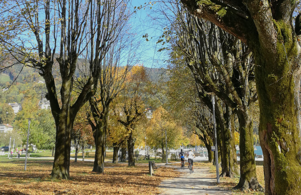 滨湖采尔位于奥地利阿尔卑斯山脉心脏地带,也是我们这次去大格洛克纳(别名大钟山)冰川经过的小镇,在这住宿的不少酒店,可提供一张滨湖采尔-卡普伦夏季卡。一般每年5-10月(具体官方为准)凭这张卡片,您就可以在平茨高地区(Pinzgau)免费乘坐所有的公共交通,包括火车、巴士、平茨高列车等,可免费或以优惠价格参观约40个景点还包含基兹特因霍恩峰和施米滕赫厄山的往返缆车票,以及采尔湖游船票。另据说这里比较多中东土豪去度假,但我们只是开车绕到湖的另外一面去,没入小镇,所以并没看到有中东游客。沿湖有个火车轨道,估计是小火车观赏湖景用的。到了湖的另一边有一个小公园,落叶满地,人迹稀少,是个散步不错的地方。在这拍了不少人像照,完全不担心有人跟你抢镜头。