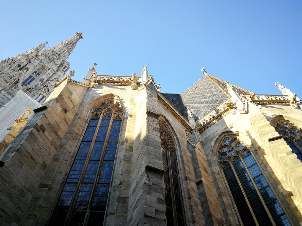 因为买了48小时的票,所以就干脆在附近坐一站公交去下一个景点了。下一个景点是圣斯蒂芬大教堂维也纳的城市地标,最重要的哥特式建筑。去的时候部分在维修,里面收藏着众多艺术古迹,如腓特烈三世的坟墓、维也纳新城祭坛、地下墓穴以及奥地利最大的铜钟。除了参观教堂的华丽内部,还可以电梯上位于北塔的观光平台,那里也是普默林教堂铜钟的所在之处。或者走343级回旋阶梯上高约137米的眺望市景。