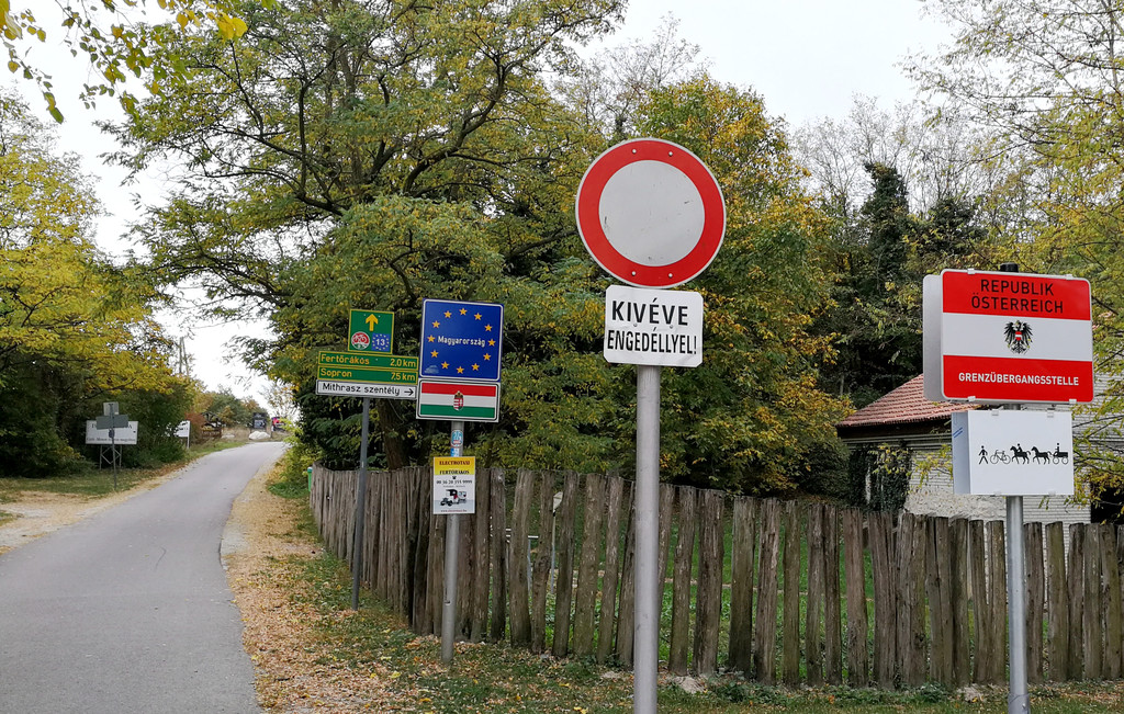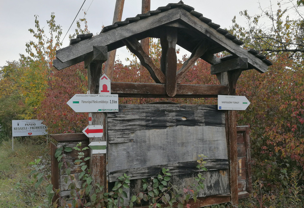 早上起来在酒店吃完早餐后,在谷歌地图查到这酒店离匈牙利边界也就几百米的距离,趁着有时间我们就去一脚踏两国了。在差不多靠近边境处,看到有一小木屋,走近一看有两个士兵拿着枪站岗,木屋窗口上还贴了一张纸英文写着“这里不是咨询处”。虽然是看到了,但本着不懂就问的原则问了其中一个士兵,过匈牙利那边要不要看护照什么的,结果人家说不用。得了答案后,我们就大大方方的从前面那条羊肠小路走过去了。过了边界发现匈牙利那边也是一大片葡萄种植园,没走上一小时估计是看不到一个小镇的,虽然过来时候看到奥地利这边停了两辆两国本地车牌的大巴在那,但也不知道是不是当地公交车啊,加上一会还想去潘多夫,就放弃继续前进了。