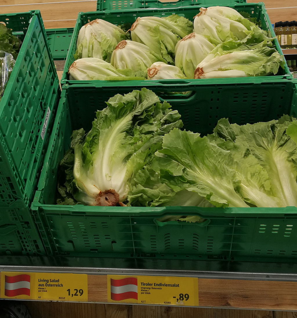 后又开车逛了小半圈 湖后,大概十点多我们就回到附近小镇找超市补给了。超市购物比较舒服,人少停车场大,可以慢慢采购。贪便宜买了0.89欧一大颗的生菜,结果吃起来口感太差了,不知道当地人拿来怎么吃的,我猜是不是做沙拉用的呢。
