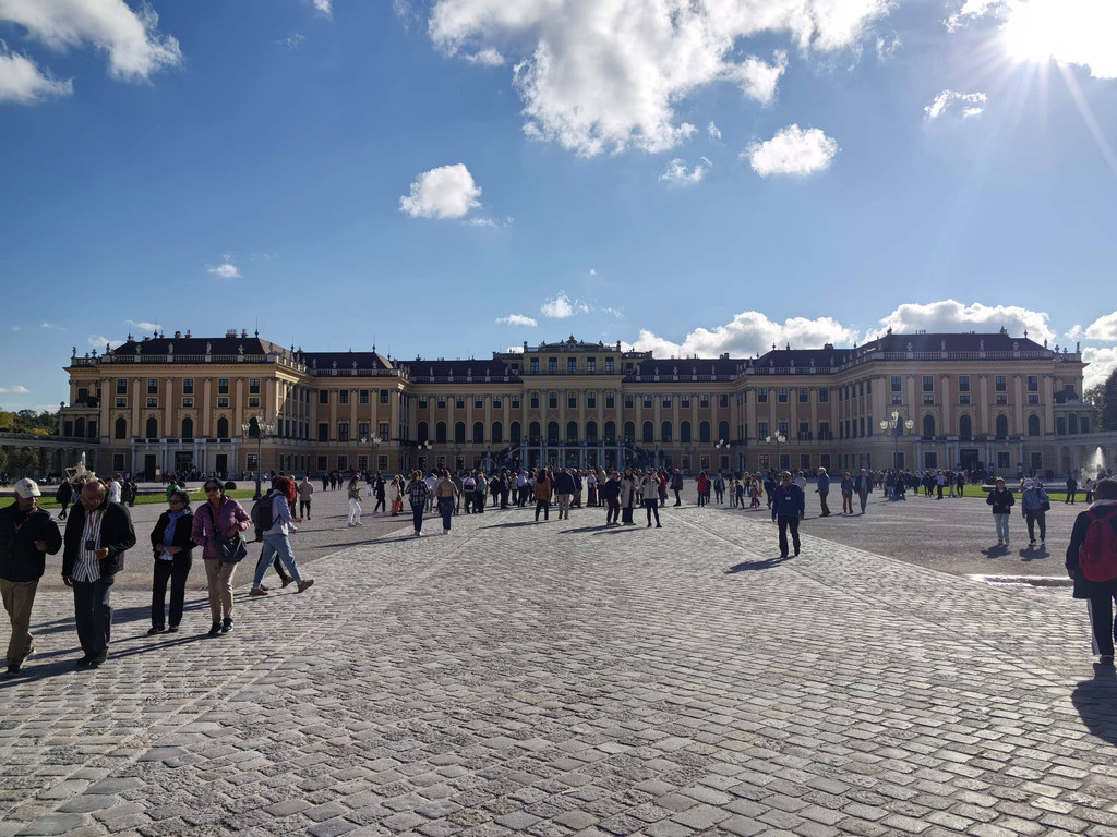 第二天一早去美泉宫,这是皇家的夏宫,可与我们的颐和园、法国的凡尔赛相提并论。进了大门果然气势非常,宽广的广场比我们故宫太和殿前的广场只大不小。
