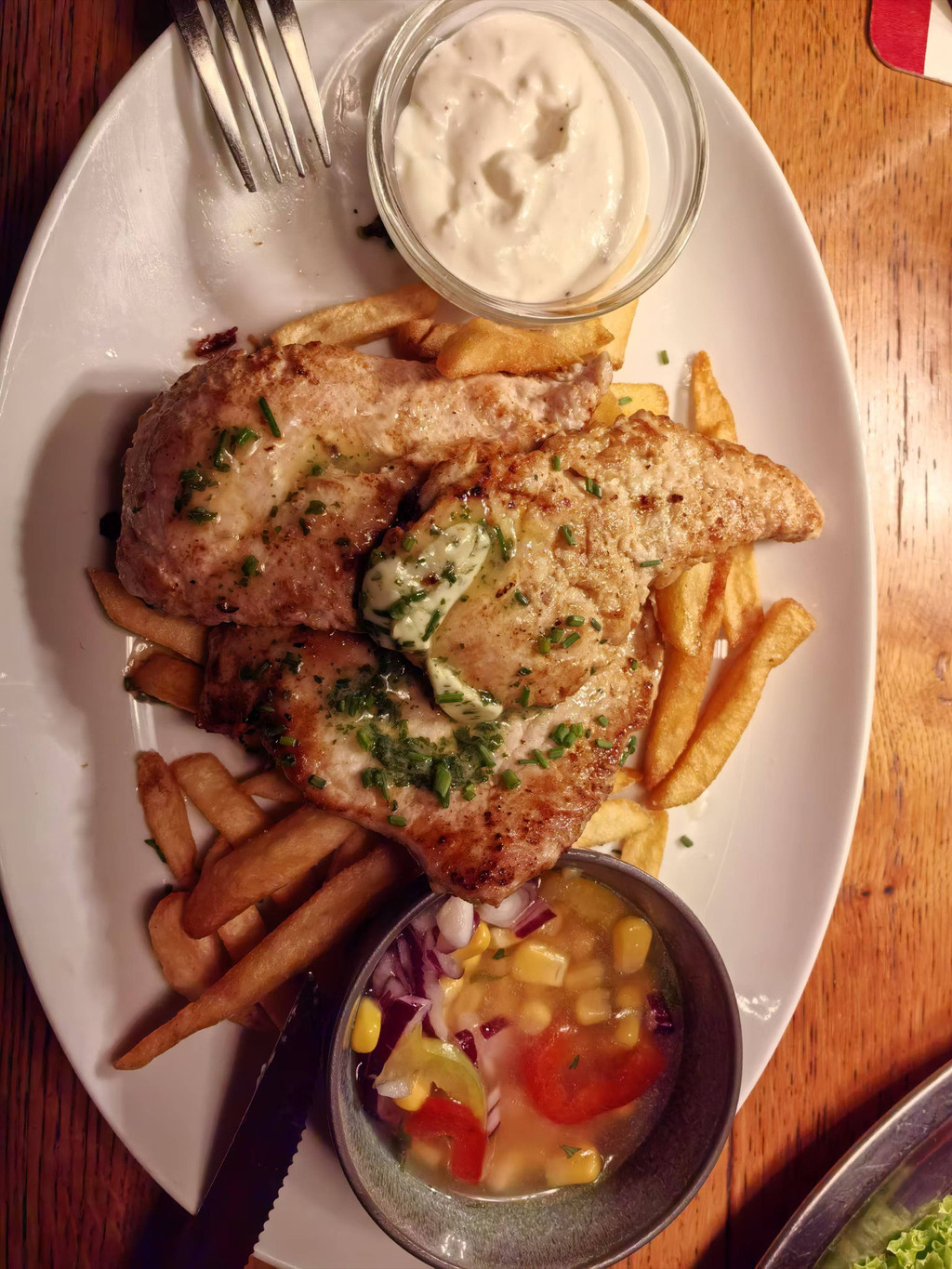 网上吃了烤鸡,喝一杯最爱的白啤。大约20多欧元,加小费两人50。