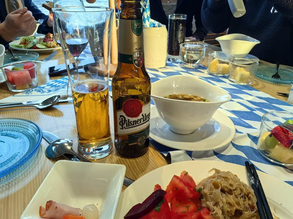 每天正餐,都有佐餐的葡萄酒和啤酒。我一般选择德国科隆的扎啤。