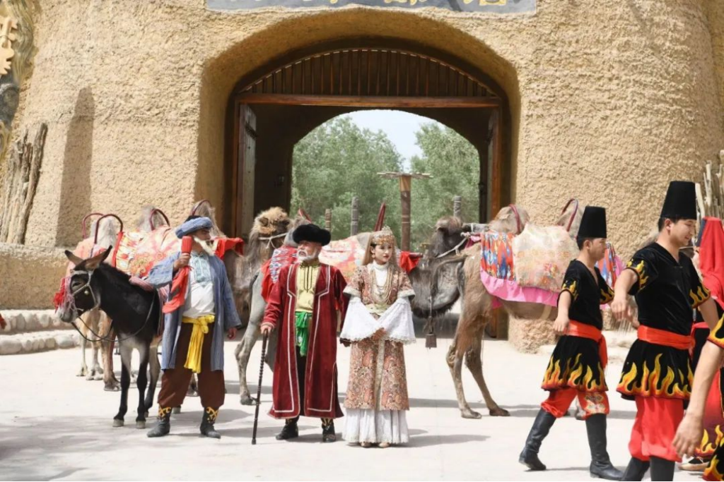 景区内老街还原了刀郎人昔日生活场景。街道旁是古朴建筑,土坯房搭配木雕门窗。走进老街,能看到传统手工作坊,如雕刻、花毡制作等。漫步其中,仿若穿越时空,能真切感受到刀郎人曾经的烟火气息与生活智慧。