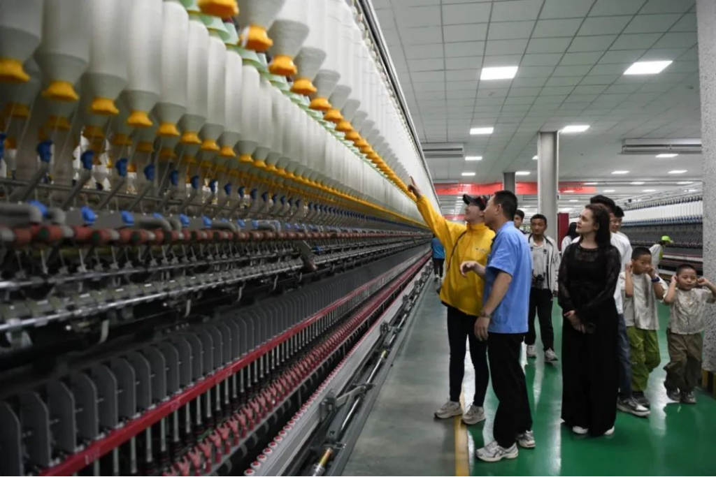 近日刚刚上映的电影《地上的云朵》,记录了新疆阿瓦提县的两户棉农家庭,在采棉季遭遇的种种困难,以及他们齐心协力克服困难、收获成果的经历,展现了棉农真实生活与朴素家庭观念。由于该影片在阿瓦提拍摄,是了解当地产业文化的绝佳窗口,因此当2025第三届丝路集结赛车队到达阿瓦提后,首先前往综合产业园参观利华纺织厂及棉都家纺车间,借此难得的机会寻找文化传播与农旅融合、工业游及研学游的共鸣。