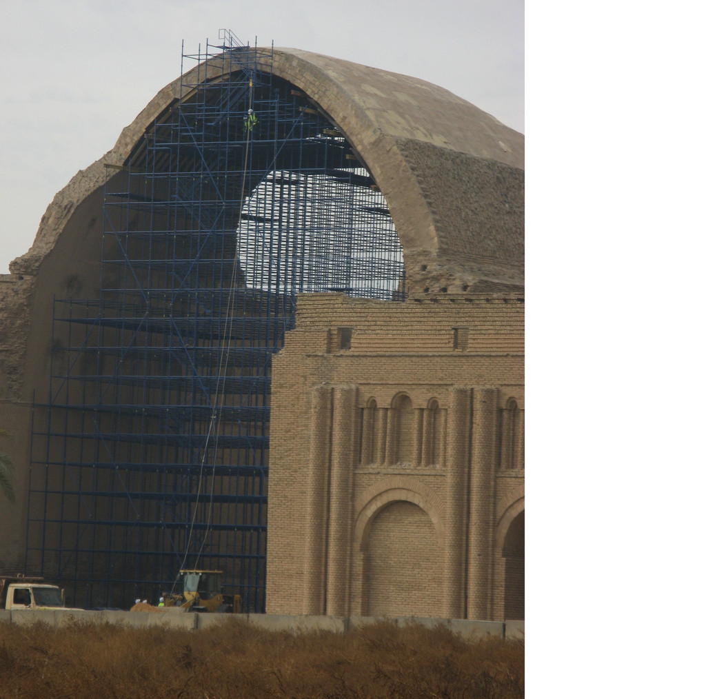 至于泰西封,位于巴格达市中心东南30多公里的地方。可以随地叫上首都市内出租车,单独来回。但由于堵车,需要1个多小时才能抵达。期间也被军警拦住,请示汇报之后才放行。而且,这个2000多年的巨大拱顶已经处于濒危状态,正在修缮之中。所以只能在铁网围墙之外远观。