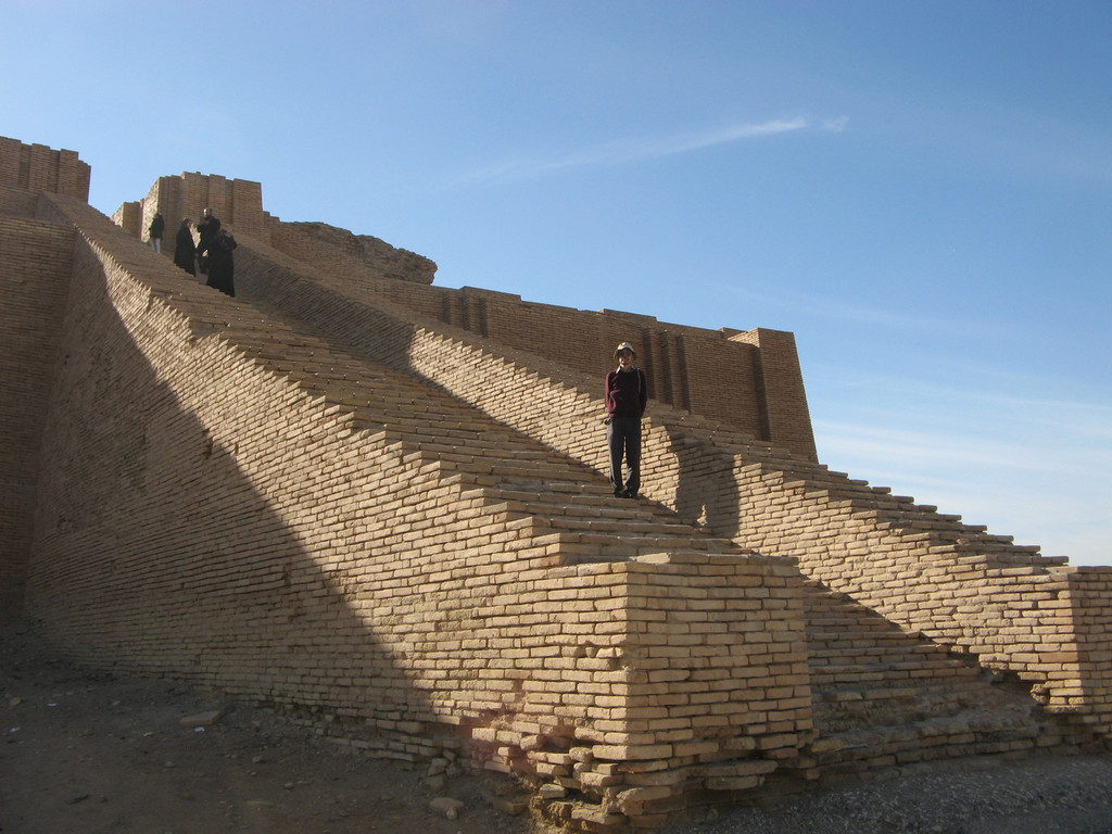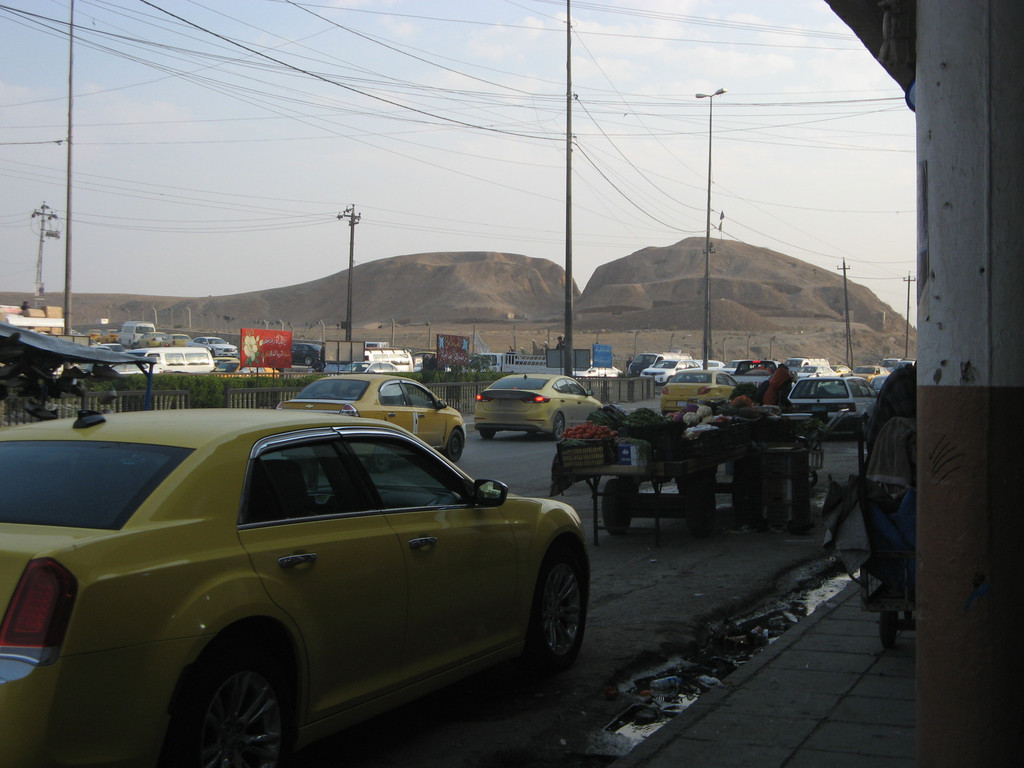 自纳杰夫沿着幼发拉底河再向东南搭车250公里,离那巴士拉不到200公里之处,便到了纳西利亚。而乌尔神塔,这个苏美尔人的重要遗迹,就位于纳西利亚西南方向15公里左右,由层层重兵把守。麻烦的是,找了一辆出租车,还没开几步路,就被安检站拦住了。先要我们回到纳西利亚城内,获得当地文物管理部门的允许。好不容易完成之后,又被拦住。原因竟然是,军警们觉得,随手招来的出租车司机,不足以保证笔者的安全。经过再三恳求,同意把出租司机的驾驶证扣押,然后要他保证全程相随,一步不落,这才罢休。