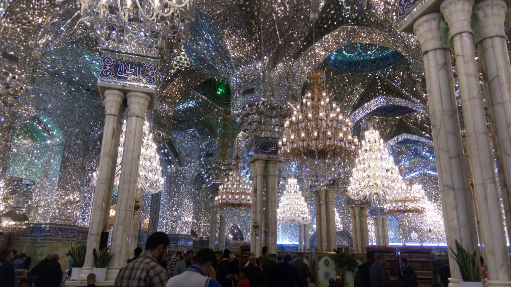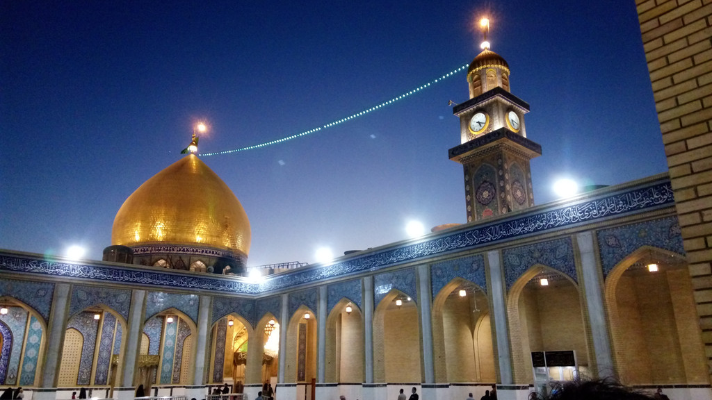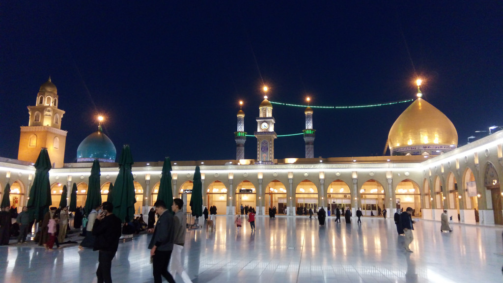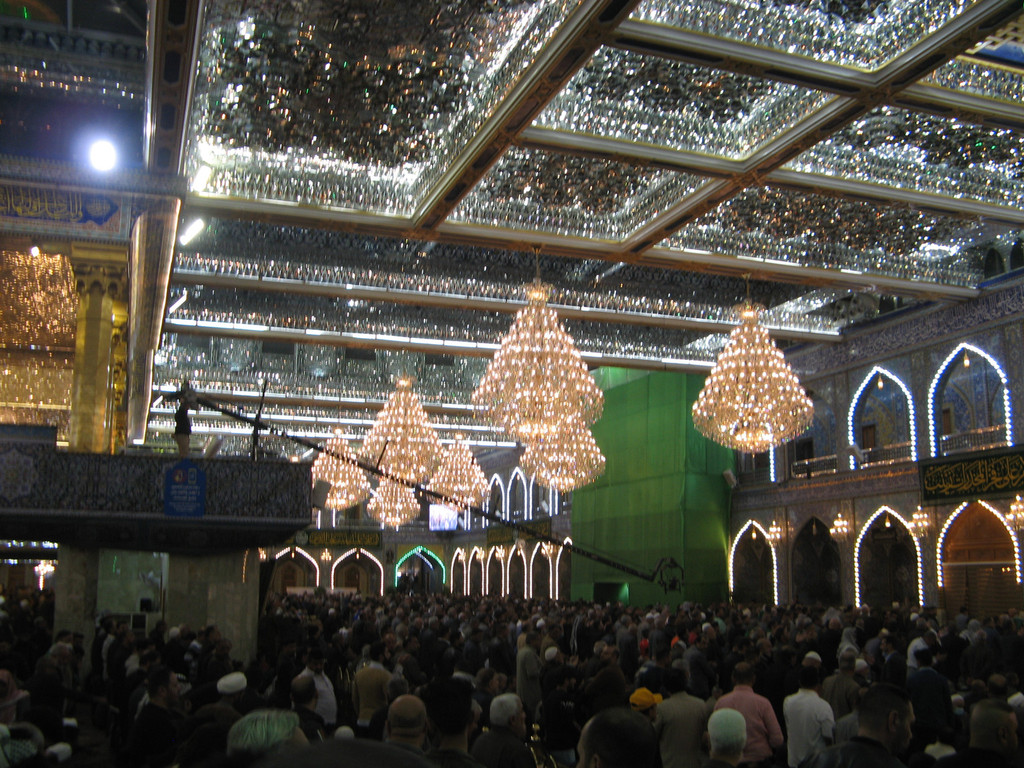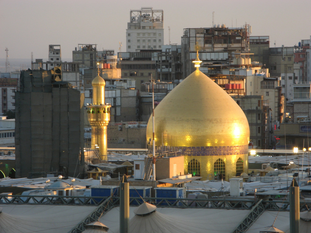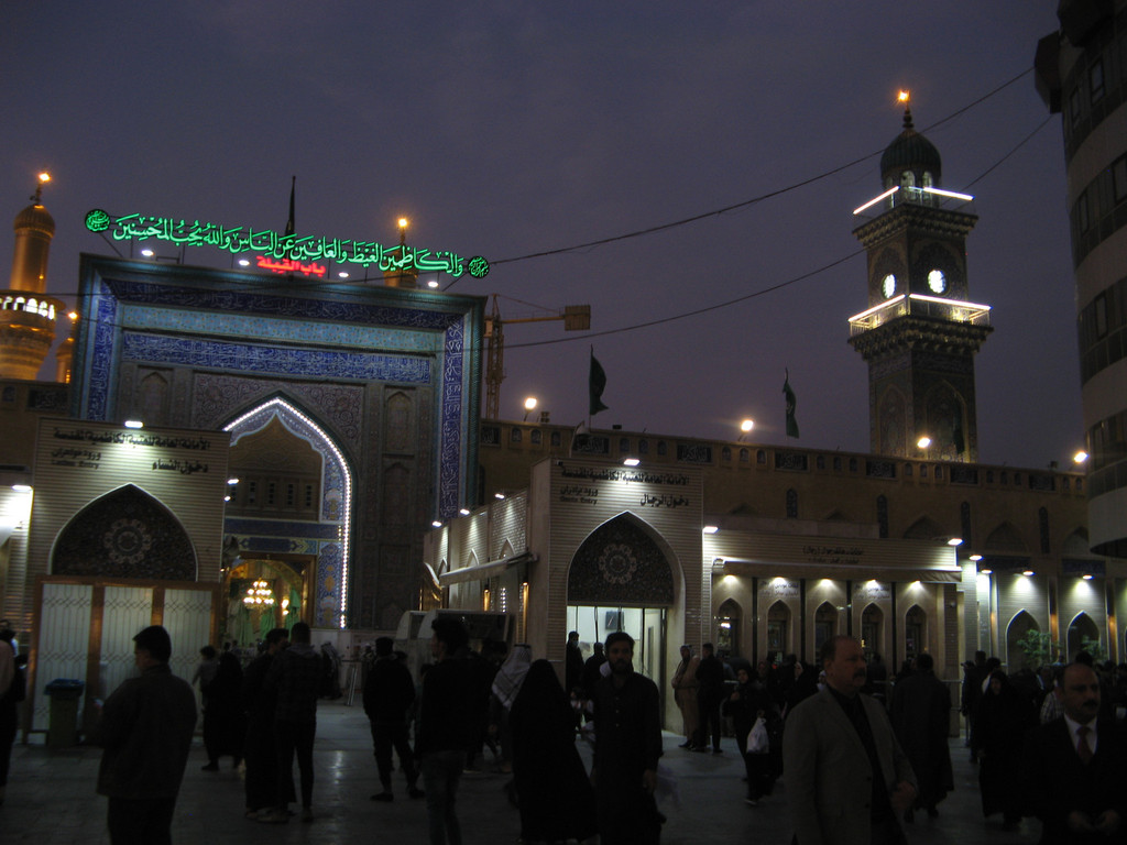 从巴格达市中心的“阿拉维”车库分享出租车,大概两个小时后,便到了110公里以南的什叶派圣城卡巴拉。市中心矗立着阿巴斯与侯赛因的圣殿,什叶始祖阿里的儿子们之寝陵。四周全是商场,旅馆。圣殿之外灯火通明,人头攒动。之内更是银光闪闪,拥挤不堪。但允许随身带入相机,只是无法随时站立,不得不随波逐流。