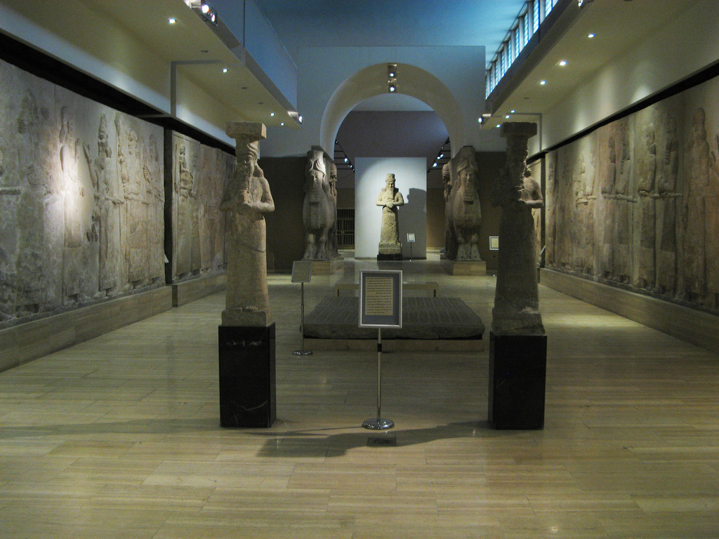 虽然并非世界遗产,国家博物馆却是大部分游人访问伊拉克之首要目标。与其对外联络部门接洽多次未果之后,干脆直接闯将过去。先用名片砸开重重武装的大门,再经过几道大小秘书警卫。终于进入了壁垒森严的内室,坐到了馆长办公桌对面。由一位漂亮姑娘翻译,一阵寒暄之后,不但准许参观,而且同意在亚述馆拍照。简直是意外的惊喜,令人不敢相信,因为笔者只求参观,并未希望摄影,打破通常规定。造成这个奇妙结果的可能原因是,谈话之际笔者每每指着博物馆的招牌图片:亚述馆的拉玛苏。
