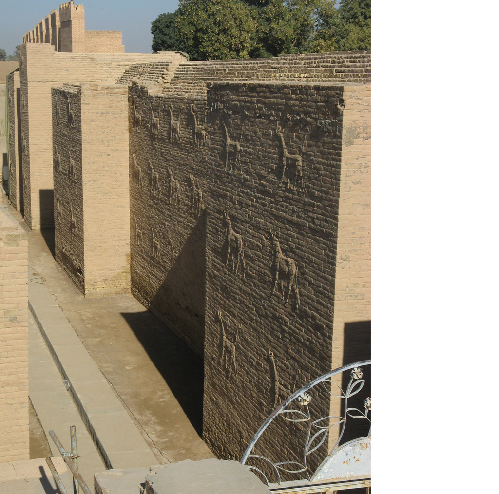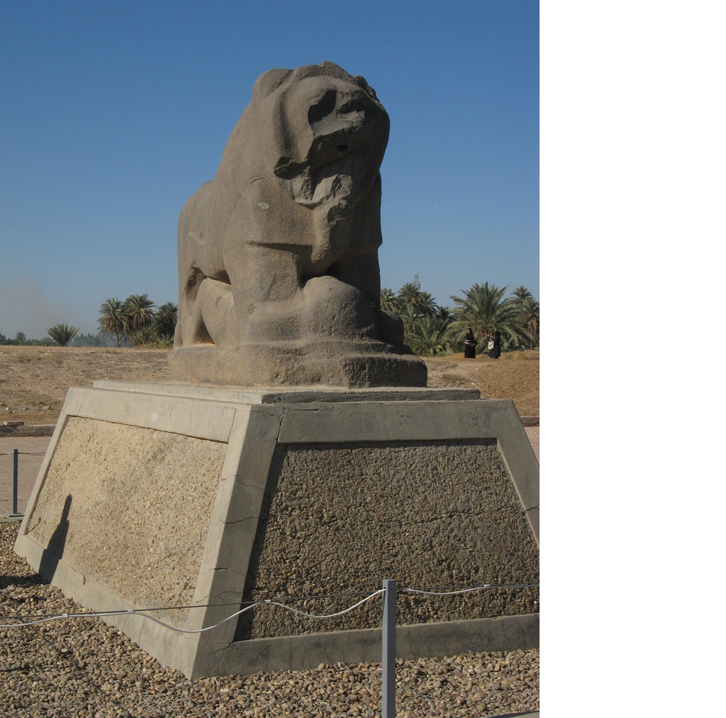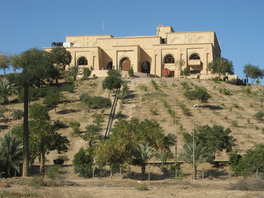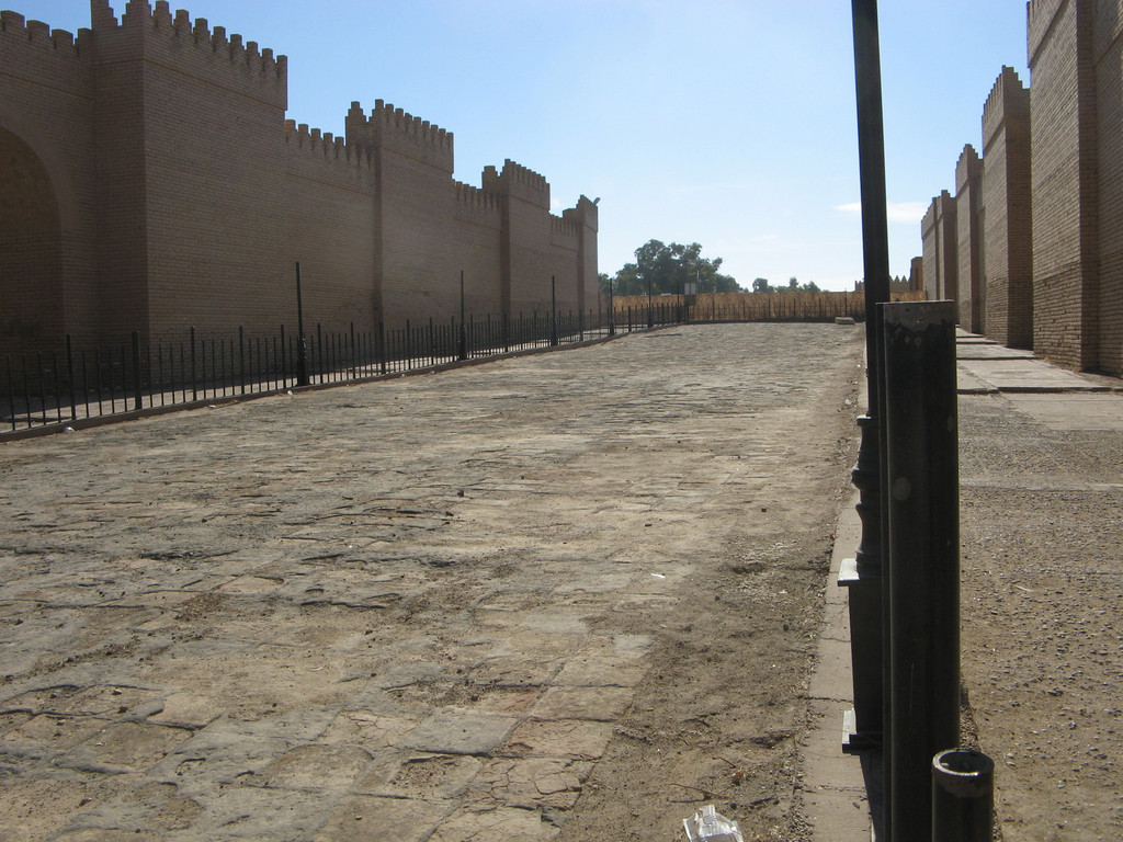 作为伊拉克最著名的旅游名片,巴比伦成为世界文化遗产只有两年,只因近代改造过多,包括那些新砖所砌的宫墙、大门等。原来的伊斯塔(战争及性爱女神)大门早被搬到了多年前朝拜过的东柏林博物岛。原汁原味者只剩那个石狮子,一段古路面,及几截老宫墙,上面刻有狮,马,神龙等。旁边小山上的萨达姆行宫,已然成了当地人游览巴比伦的连带节目。不过,站在行宫门前,可以俯瞰整个古迹。因为坐落在首都以南大约90公里,但距卡巴拉只有50公里。所以,行程安排在卡巴拉与纳杰夫之间为宜。