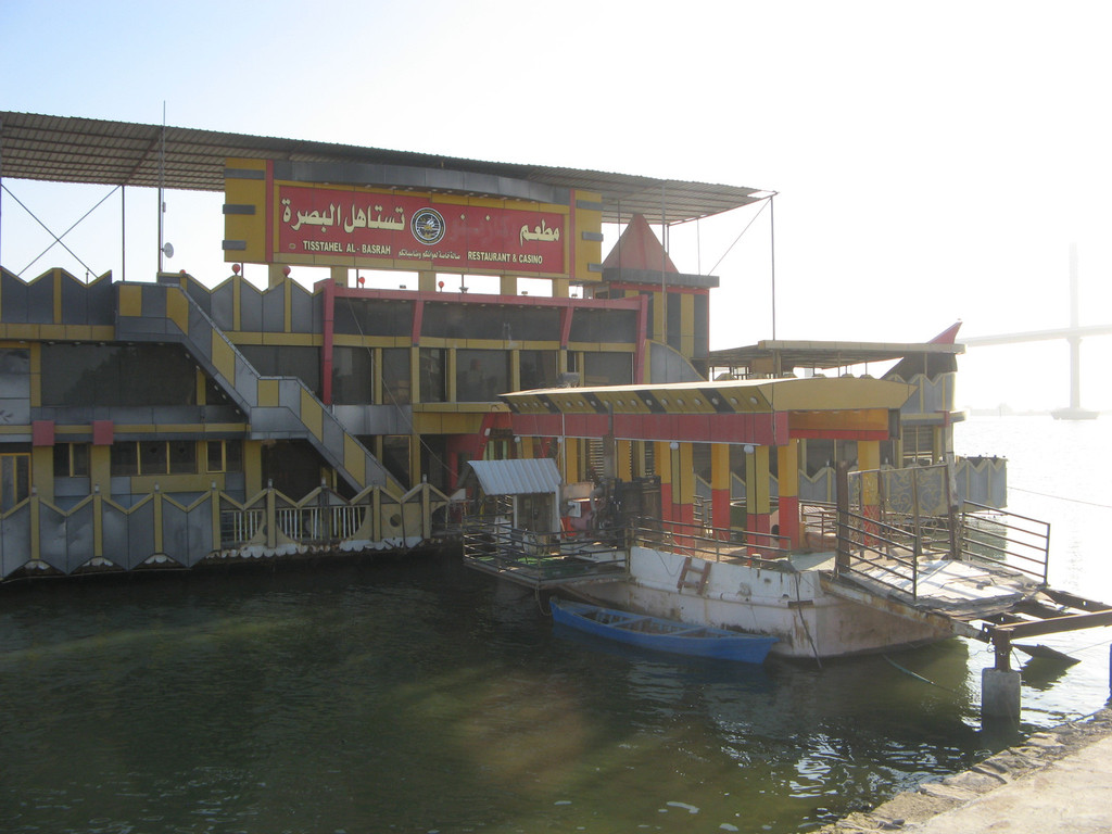 经过纳西利亚及乌尔神塔之后,再拼车近200公里,可抵伊拉克第二大城巴士拉。这里已经是两河汇合之后,变成了同一条阿拉伯河。有趣的是,从纳西利亚到巴士拉的途中,出租车开到了每小时180公里的速度。四周荒漠一望无际,地平线上不时出现巨型的火炬 - 附近油田在焚烧天然气。尽管巴士拉本身没有太多的古迹,但沿着阿拉伯河的南岸,颇有现代都市的味道。尤其是在老城中心,有一批19/20世纪的,带2楼阳台的老房子,连带附近的基督教堂,正由联合国组织进行修复,试图恢复昔日的荣光。另有一个辛巴达岛,乃“一千零一夜”小说中所描绘的水手出发地。可惜的是,该岛早已经失去了往日的繁华,几乎变成了一个垃圾堆,令人十分失望。还有所谓“时代广场”的现代购物中心,里面居然遇到了来自大连的商贩。