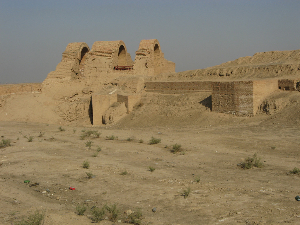 伊拉克境内从首都向北到摩苏尔的400多公里路程,是一个不小的挑战。倒不是因为听说可能还有残余武装分子,而是因为沿途有两个濒危的世界遗产。不但早已关闭,而且远离主路干道。所以,无法依靠通常的出租拼车。考虑再三,决定在巴格达寻找恰当的司机,包车前往。虽然价格不菲,但事后看来,这一决定无比正确。早晨从首都出发,经过了三四个小时的旅途,中间经过萨达姆的家乡提克里特市,又走了近20公里的向东岔道,便抵达了亚述帝国的早期首都亚述城。据说被伊斯国严重破坏,所以只能沿着四周,围观一下3-4千年的痕迹。除了土墙,只有一个拱门,著名的三重拱门,还算完好无损。