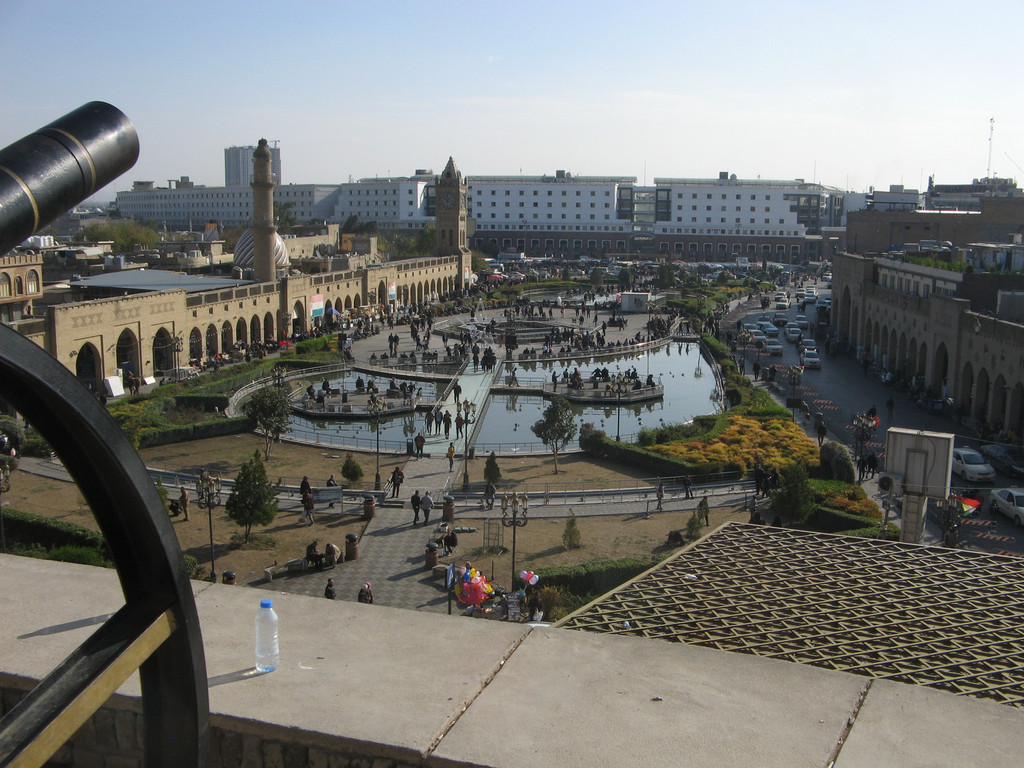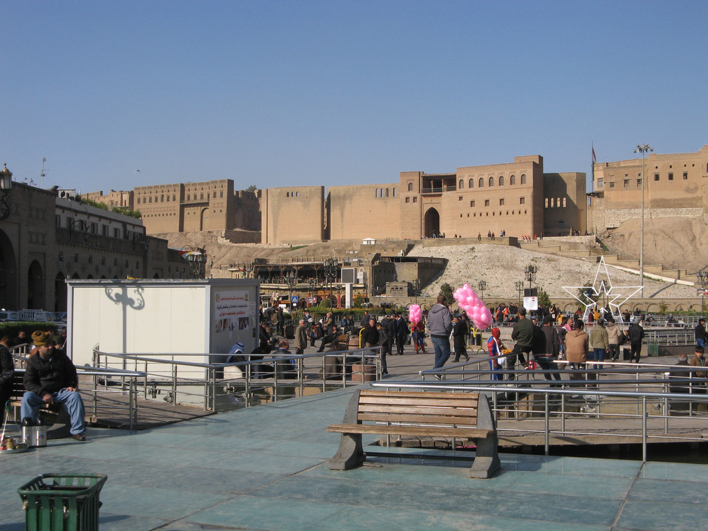 下一站的苏莱曼尼亚倒是不错。尤其是市中心,不但繁华,而且旅馆多,条件也非常好。只是没有太多的可看之处。最后一站是库尔德斯坦的首府埃尔比勒。总算有一个山顶古堡,被列为世界遗产。以这个古堡为中心,像摊烧饼似的摊了五个圆环。古堡外围的广场等算成一环。朝外七八百米就是二环,再往外两公里成了三环,等等。返程的机场就在五环边上,西北偏北方位。古堡正南的喷泉广场有近200米长,旁边是硕大的巴刹,天天人潮汹涌,室内有无数个金银手饰商店。虽然旅馆的招牌到处都是,却找不到一个有坐式马桶的,需要走到二环附近才行。