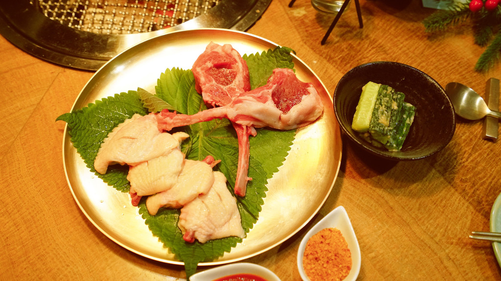 在长白山万达凯悦酒店就吃到了正宗的韩式烤肉。在长白山那几天,正好是圣诞节前夕,所以餐厅的装饰也是充满了圣诞气氛。在这寒冷的冬夜,几个好友围炉夜话,火上烤着滋滋冒油的牛羊肉,温暖的氛围加上美食,让一天的疲累得到了极好的放松和补给。