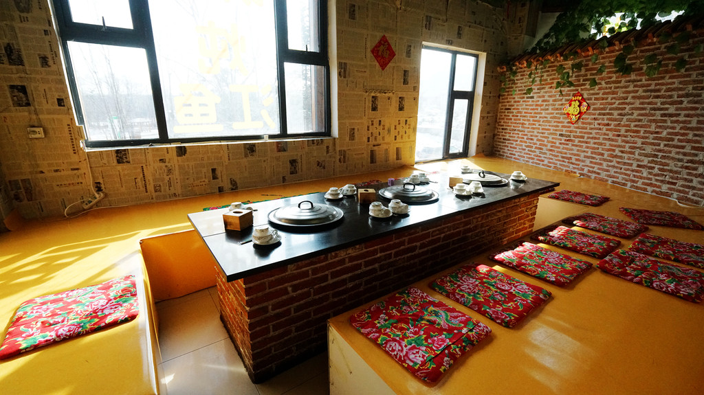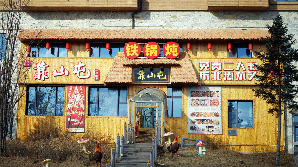 到了长白山,那自然不能错过让人垂涎欲滴的东北菜。在这个寒冷的冬日,最让人喜欢的东北菜那自然是铁锅炖。在整个长白山万达国际度假小镇,有铁锅炖的餐厅,除了上图的这个靠山屯,在我所住的长白山万达套房假日酒店也有,而且酒店的冬日暖锅,特别推荐明太鱼锅,辣辣的鱼锅搭配东北老豆腐,绝配!