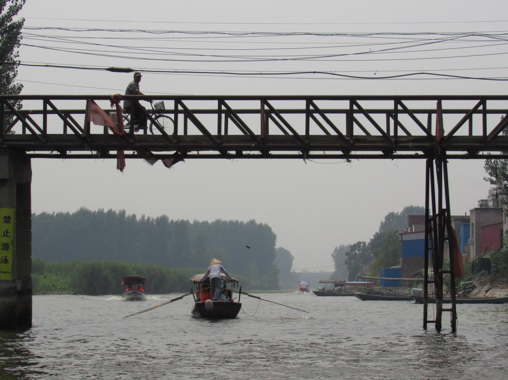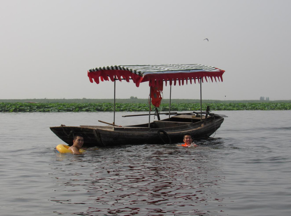 河道两旁除了荷花芦苇荡,还有当地快乐の戏水孩童,农家乐也有很多。