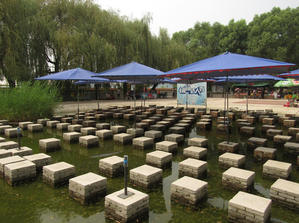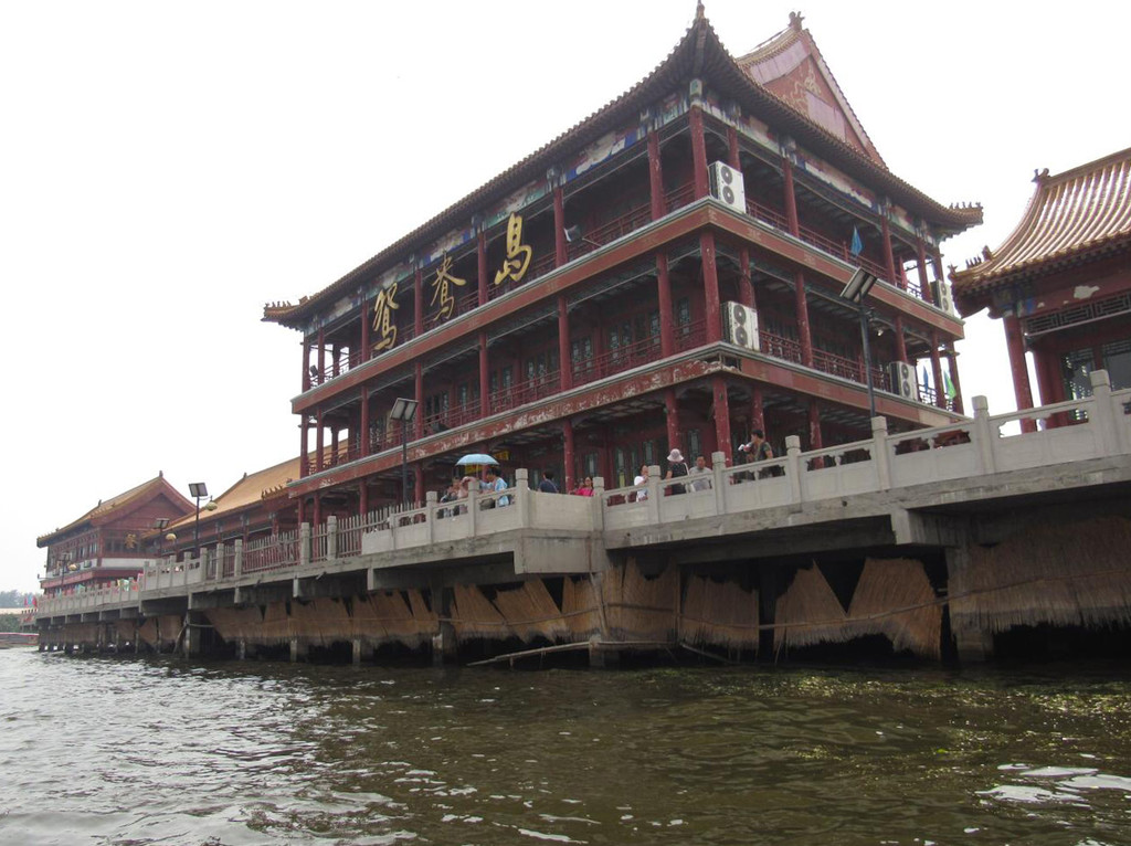 白洋淀景区由几个岛屿组成,主岛面积最大建设最完善,我们停靠在较远の码头,然后从正门进入。