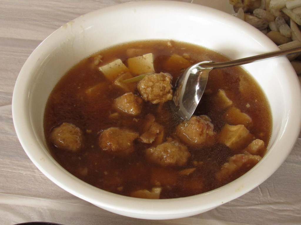 《胖墩度假村》肉丸豆腐汤:当地一日游团餐の汤,八人桌七个肉丸,这要是下手慢了都不够塞牙缝的。