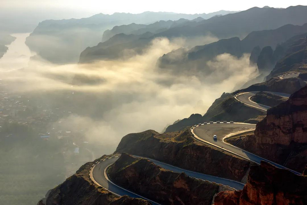 二十二道弯是一条修在绝壁上的路,一面是惊险刺激的“山路二十二弯”,另一面则是万千山峰的嵯峨叠障、万千沟壑的峰回路转。