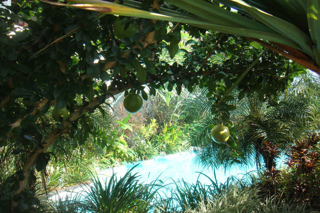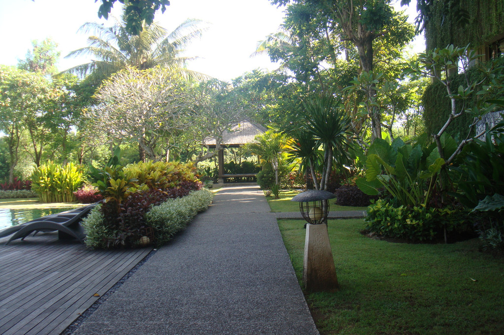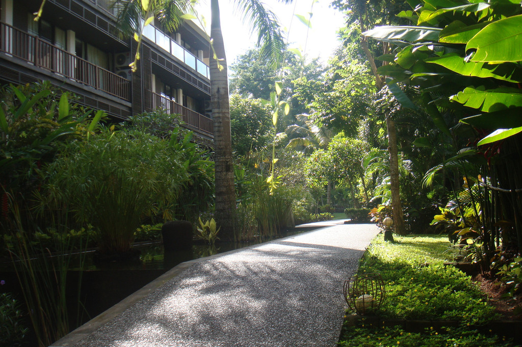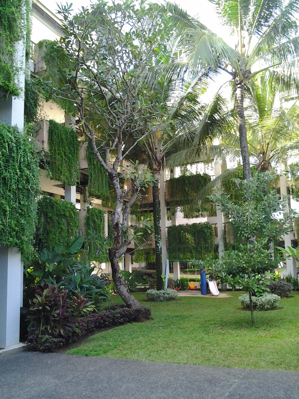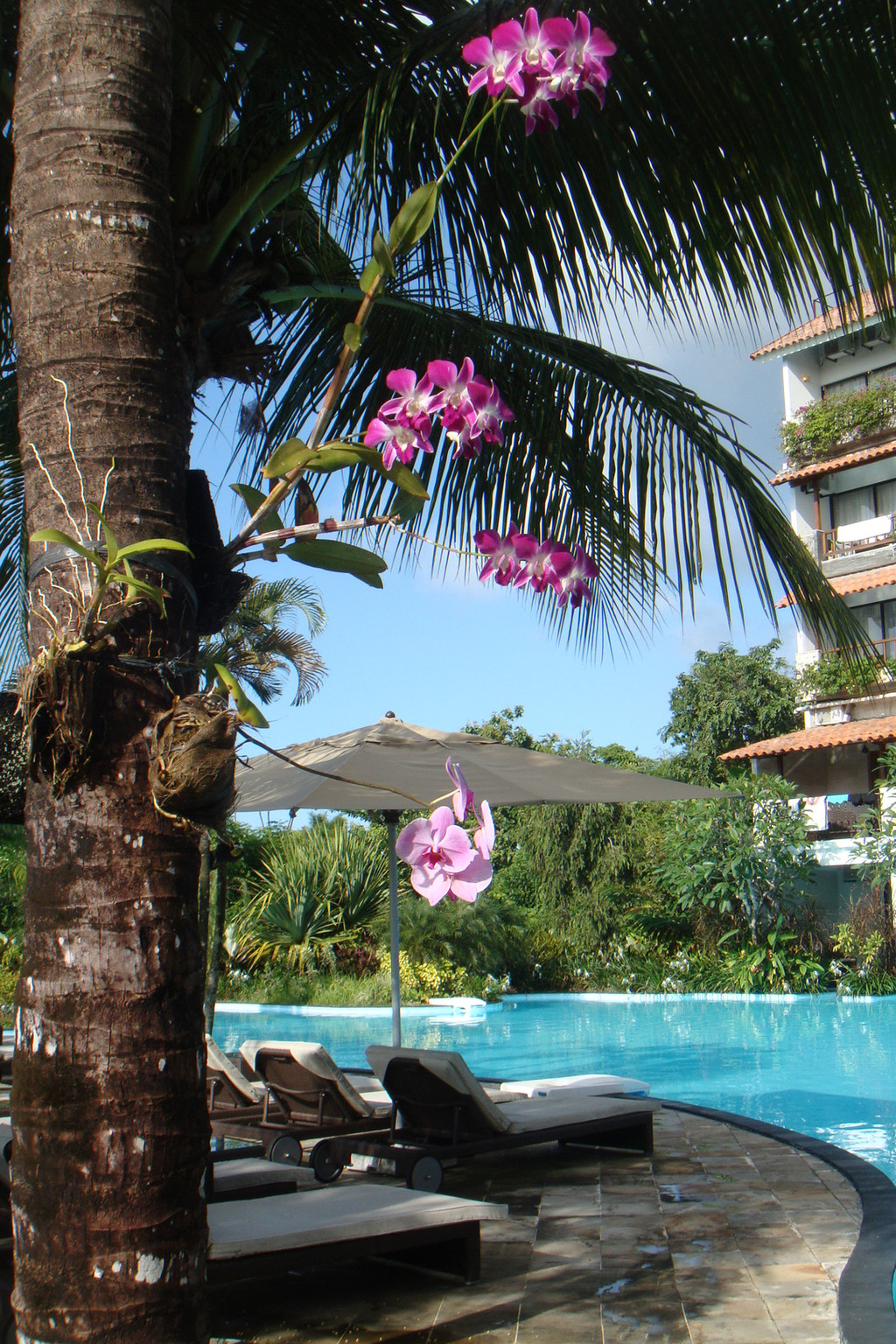 吃过早餐,我便拎着相机逛起了酒店。对于长期居住在都市里的人来说,巴厘岛的绿化实在是太好了,满眼的绿色,绿色之中又遍开芬芳的花朵,让你欣喜不已。椰子树、大椰子、榴莲等等长满整个巴厘岛。
