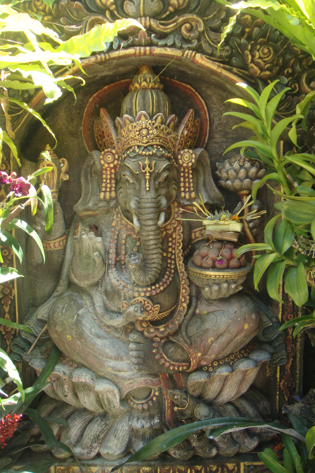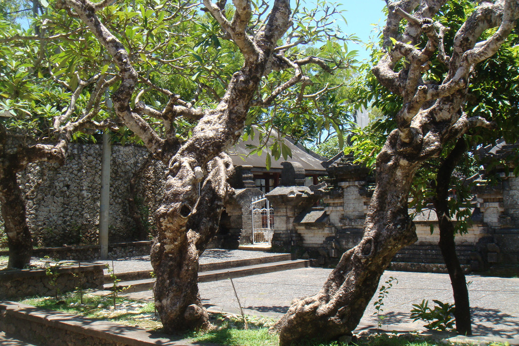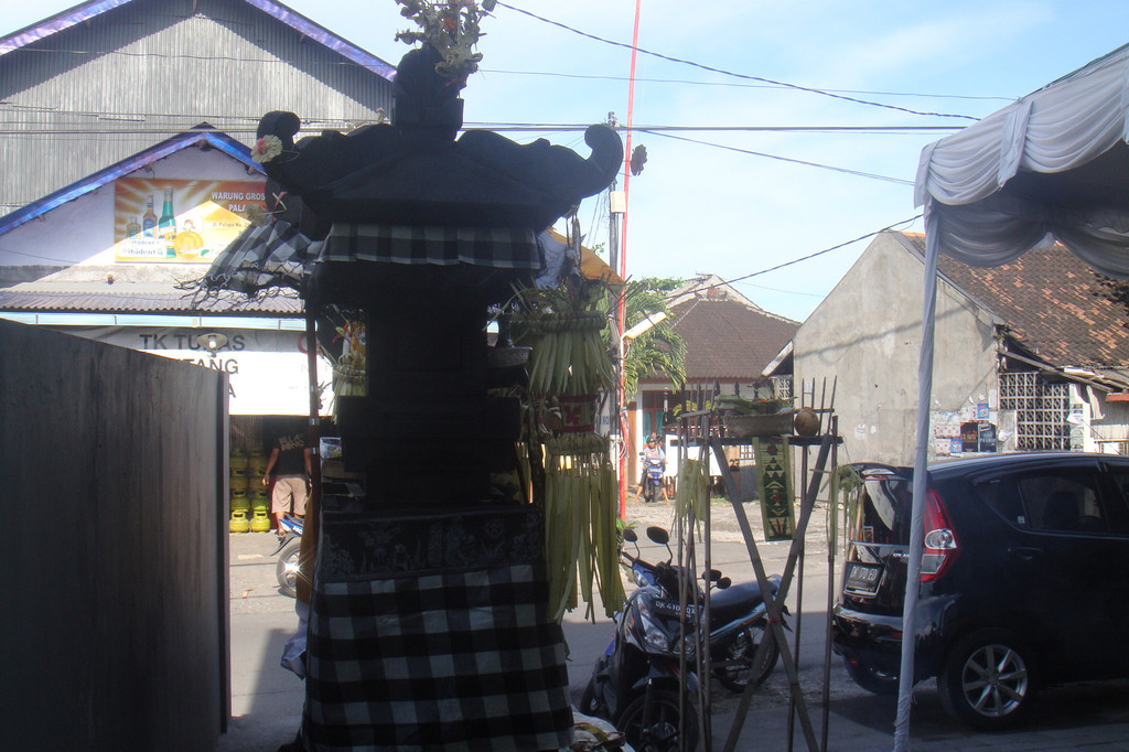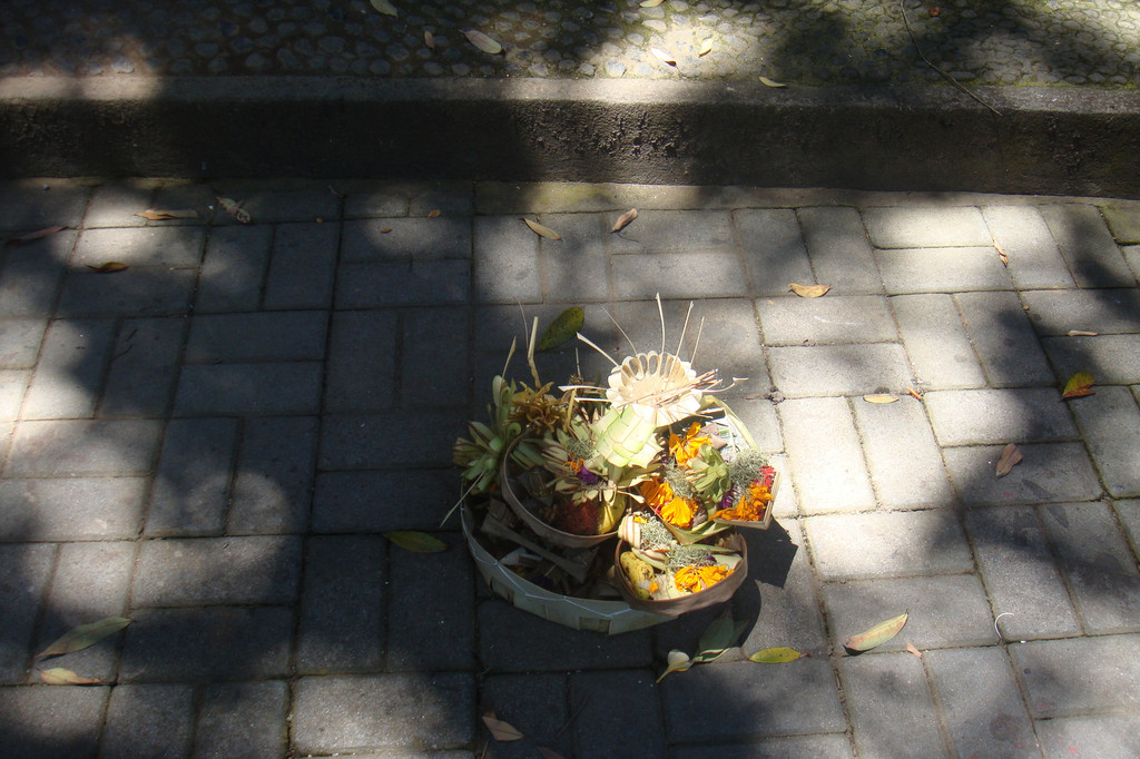 在巴厘岛,人们把每日供奉的东西用方格布围绕起来以示有人祭拜,祭拜的东西不拘一格,有石像、香炉和大树等等。在巴厘人思想中,任何物体都是有神存在的,都是可以拜拜的。