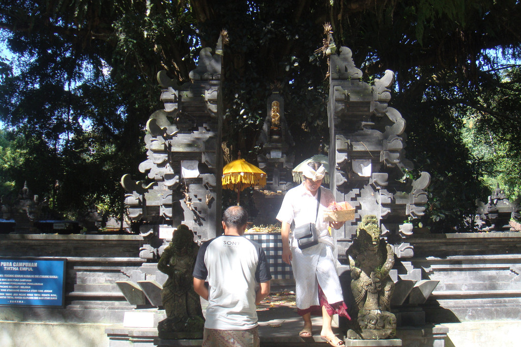 用过午餐之后,下午我们去了巴厘岛非常著名的圣泉寺。圣泉寺(Tirtha Empul)是“千寺之岛”巴厘岛上著名的庙宇之一,已有了千多年的历史。石头圣龛上早是苔痕斑斑,而泉涌依然如当年。