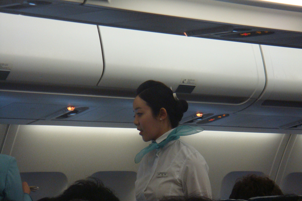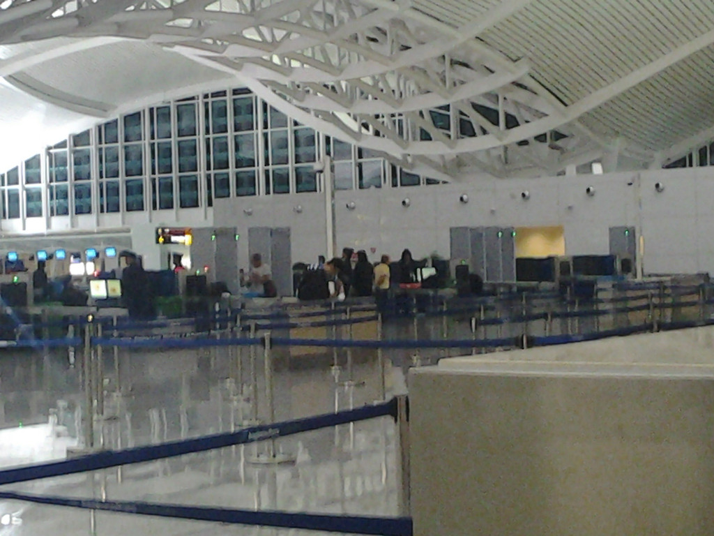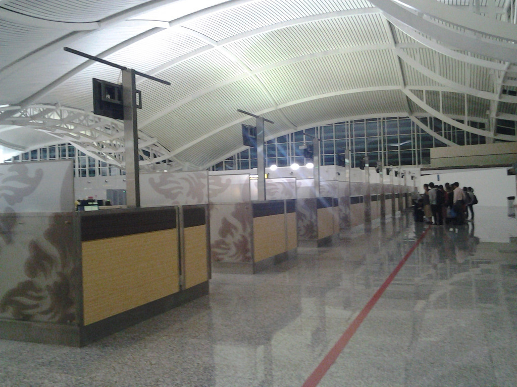 在柜台上只要托运行李和出示护照就好,同样的,还是要将行李直挂大连,同时我又用了一下我那可怜的英语,申请了一个靠窗的位置。