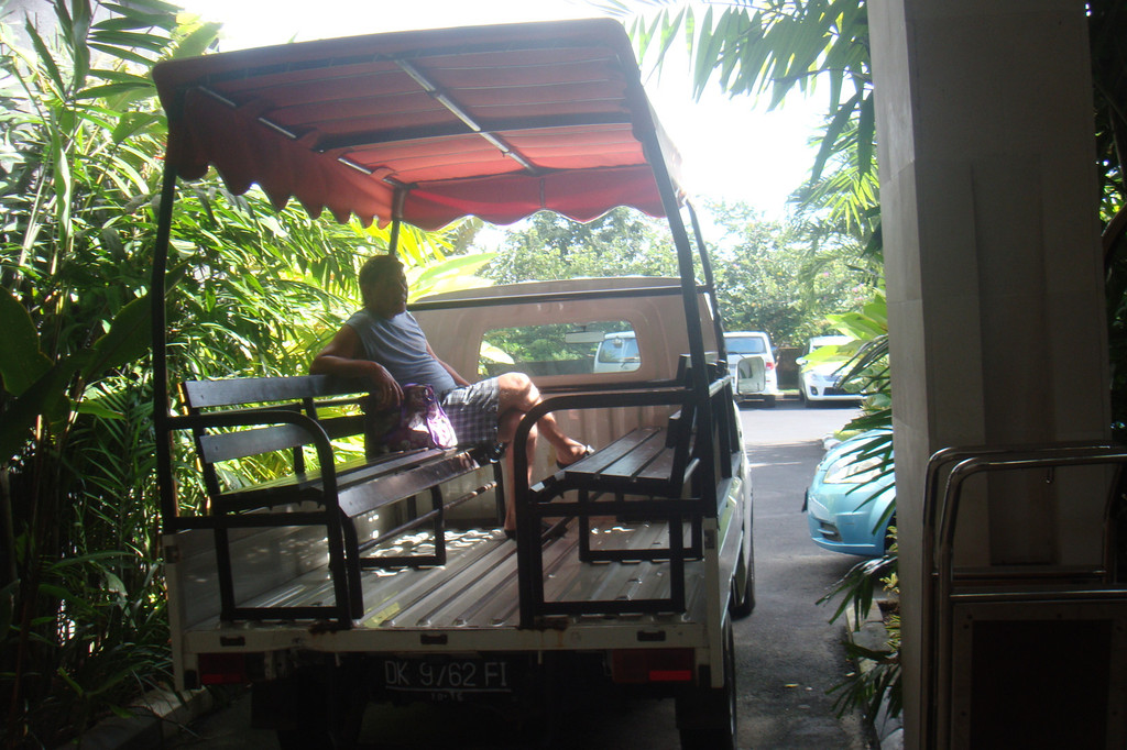 现在是在巴厘岛的第一个早晨,昨夜一点多到达酒店,从机场出来到酒店将近20分钟的车程,午夜之后巴厘岛的车很少了,但是却有很多骑摩托车骑的飞快的人,刚开始我以为巴厘岛如此fashion,午夜有这么多人在飙车,而且全是飙摩托车,还载人飙车!后来才知道,摩托车就是巴厘岛当地最主要的交通工具。人家是正常驾驶。