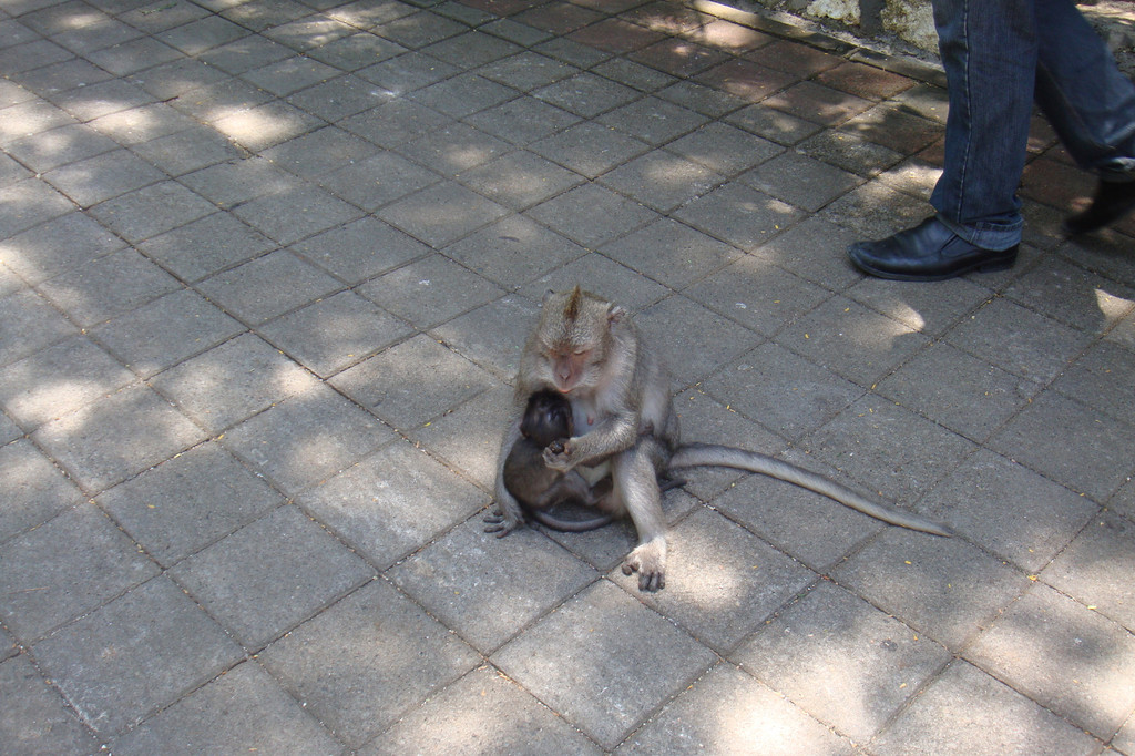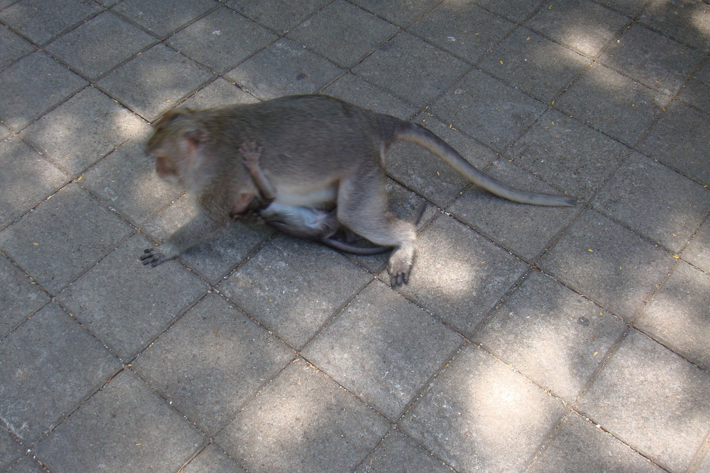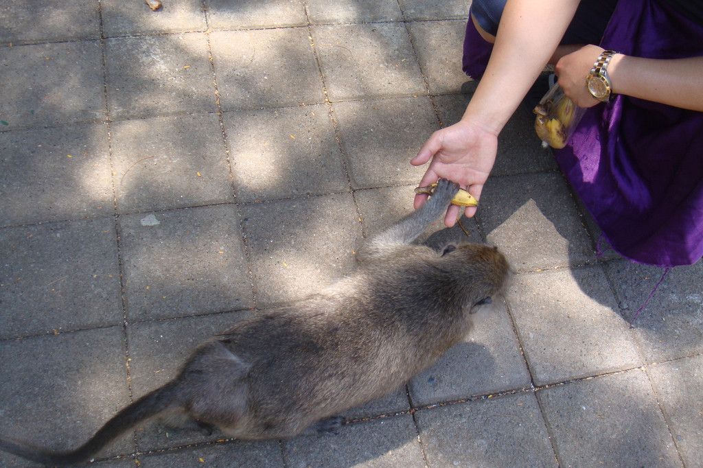 我的背包上有个黄色的橡胶小人,被一只猴子瞄上了,动作之迅速让你防不胜防。当他向我看来的时候,我就感觉不妙,赶紧握紧了手中的相机,就在那一刹那!他就轻易的从我身前飘过,并带走了我背包上的黄色小人!等我回神儿看他的时候,他已经把我那可怜的橡胶小人的头咬掉了,而且还被他瞬间吐到了地上。。。一脸嫌弃的表情。。。