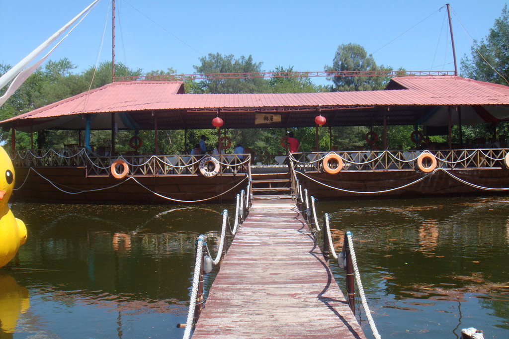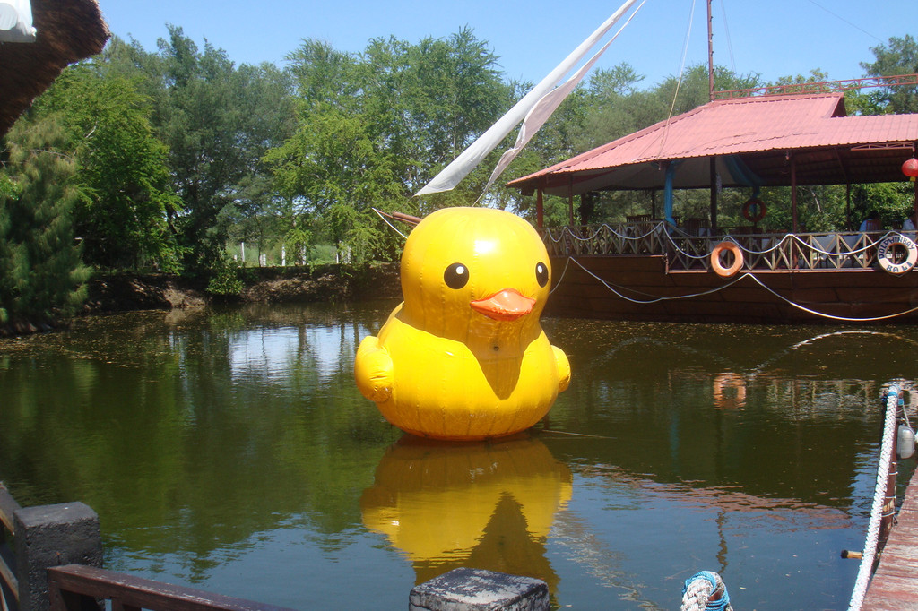 旁边还有一家钓鱼餐厅,位置和AKAME差不多,我拍了一张照片,主要是因为湖面上的大黄鸭。