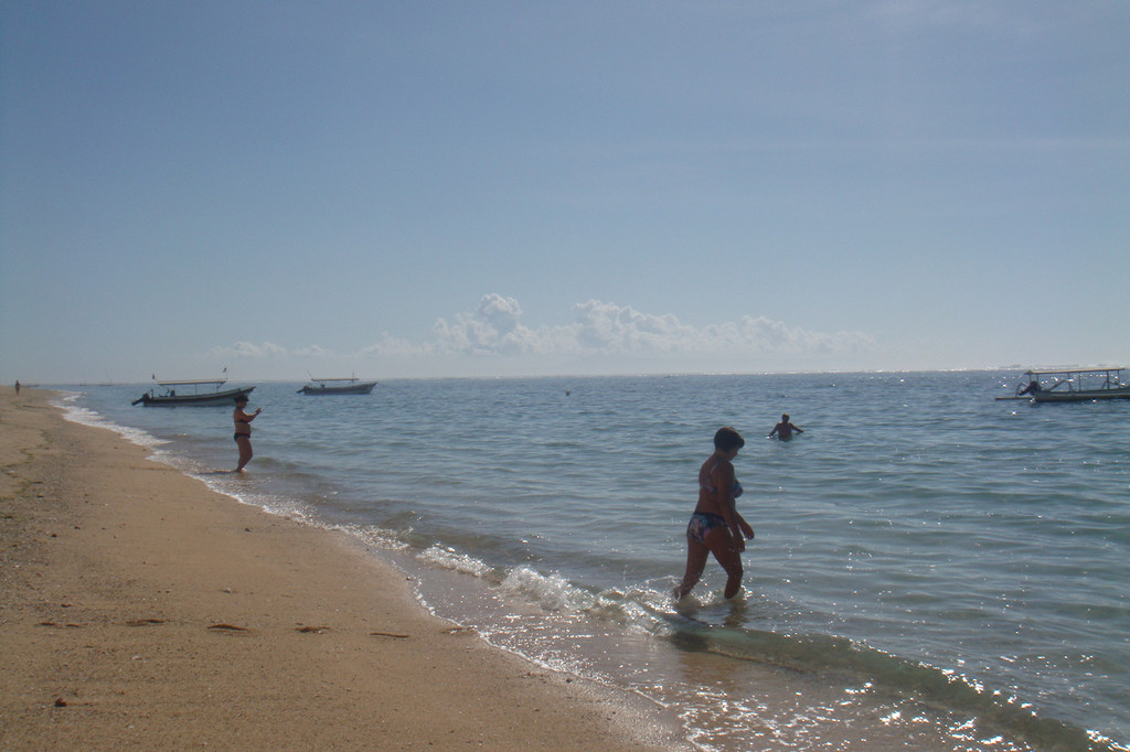 南湾水上活动中心,是大部分游客去巴厘岛一定要去的地方。海滩按摩,编印尼特色的麻花辫子,还有水上摩托车、香蕉船、拖曳伞、浮潜、深浅等等水上活动。此外,还可以从这里出发,乘坐玻璃底船去海龟岛。沿途海风徐徐,您可悠哉地喂食海中成群的各色热带鱼并观赏船底下瑰丽多彩的珊瑚礁群,抵达海龟岛后,您可自与大海龟、大蟒蛇、大蜥蜴拍照留念,更可以来一场惊心动魄的斗鸡大赛,小试一下手气。