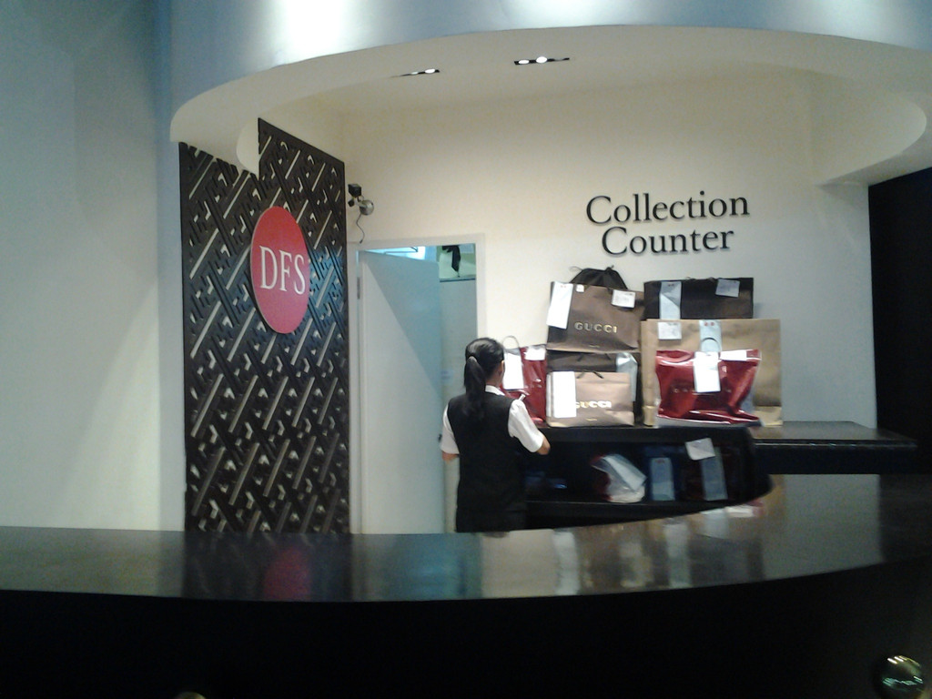 那个建筑的下面有一个小柜台,写着DFS COLLECTION。这个就是你在巴厘岛免税店买东西,然后再在机场的领取处。