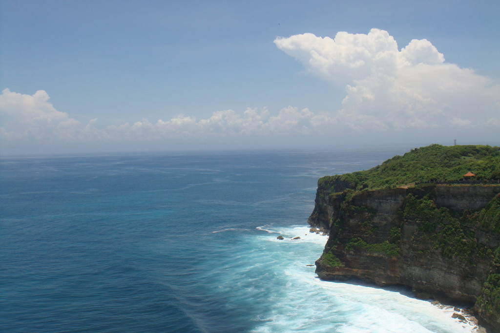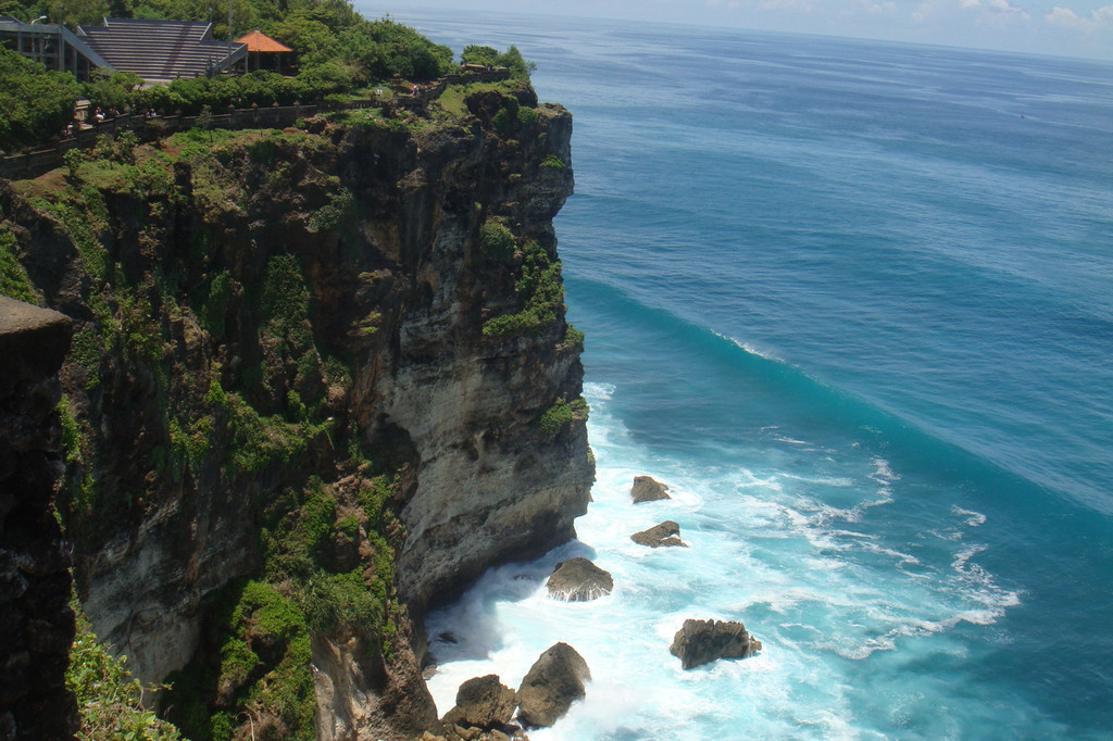 乌鲁瓦图神庙是巴厘岛上最为庄严宏伟的庙宇,坐落于高原边缘的一座悬崖绝壁之上,高原之下就是波涛汹涌的印度洋。建于11世纪,全部使用坚硬的花岗岩建造。