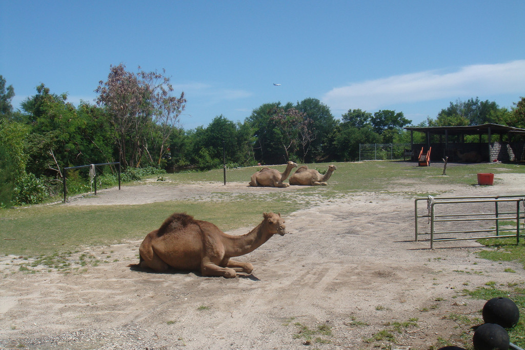 首先来到了骆驼饲养区,果然看到几只骆驼在悠闲的进行饭后消化,眼睛看着我们,嘴里在不停的嚼着。