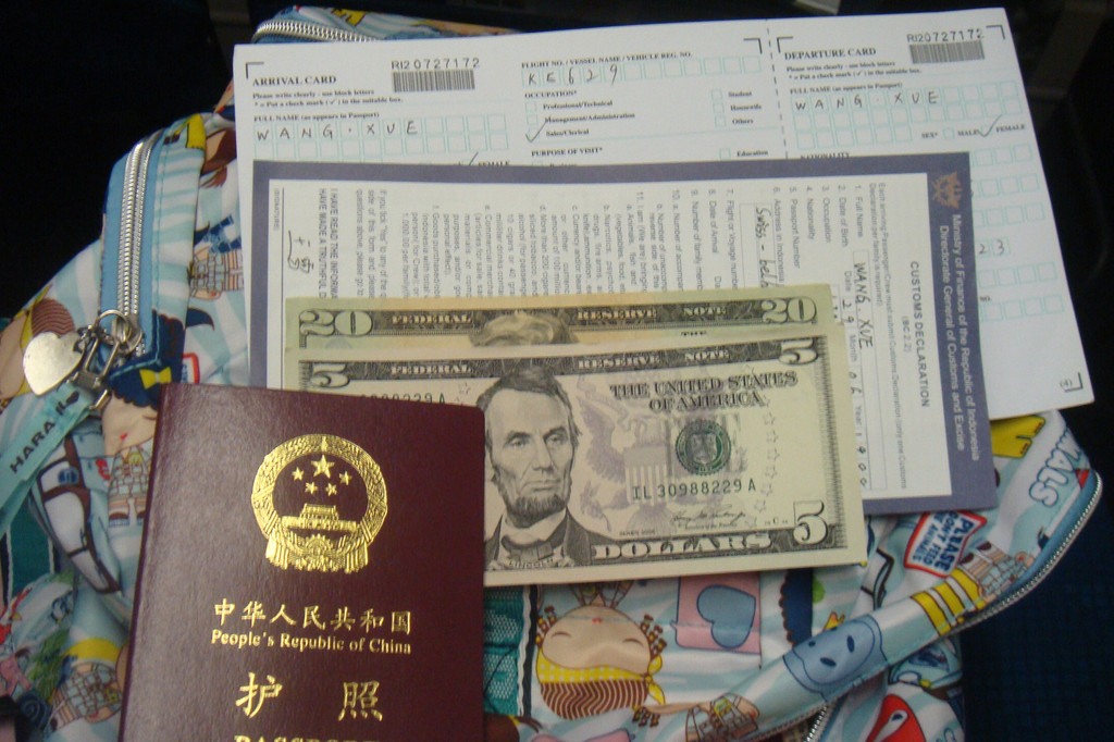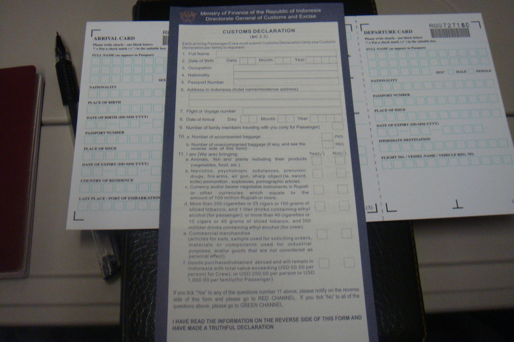 下面的那张是出入境卡,中间有一条虚线,是可以分开的。左边的是入境卡,右边的是出境卡,不要自己擅自分开。抵达巴厘岛之后,会被收走左边的出境卡,右边的离境卡要自己收好,离境时会收走。