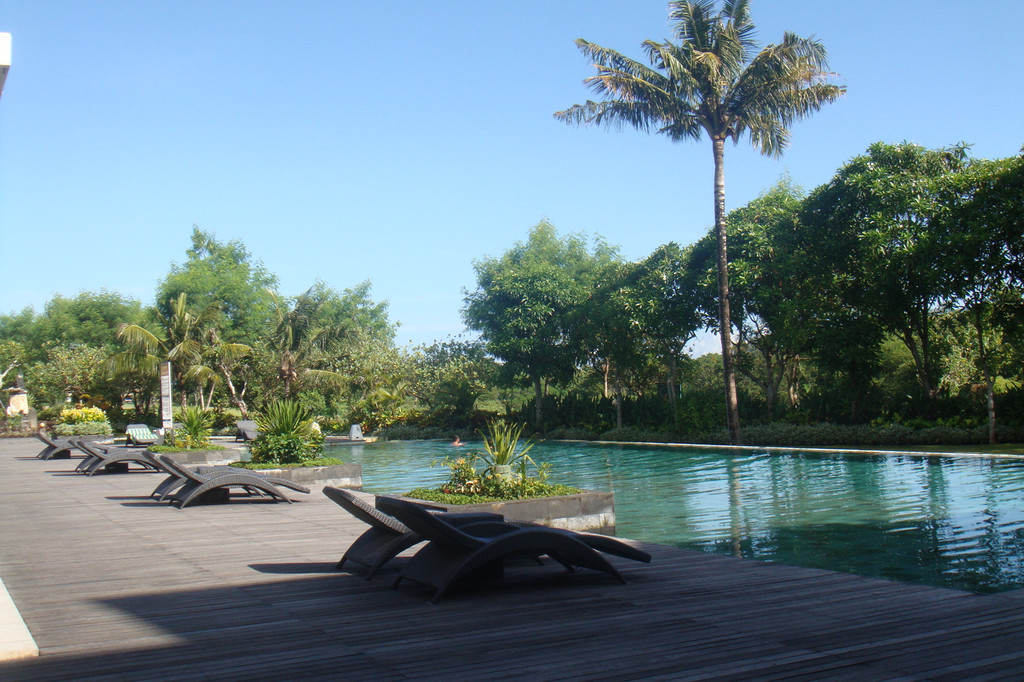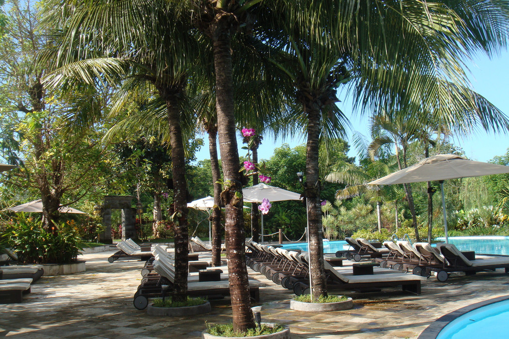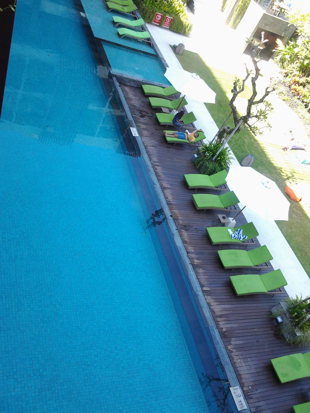 酒店的泳池,游泳的人很少,只要懒洋洋的享受绿色和阳光就是极好的了。