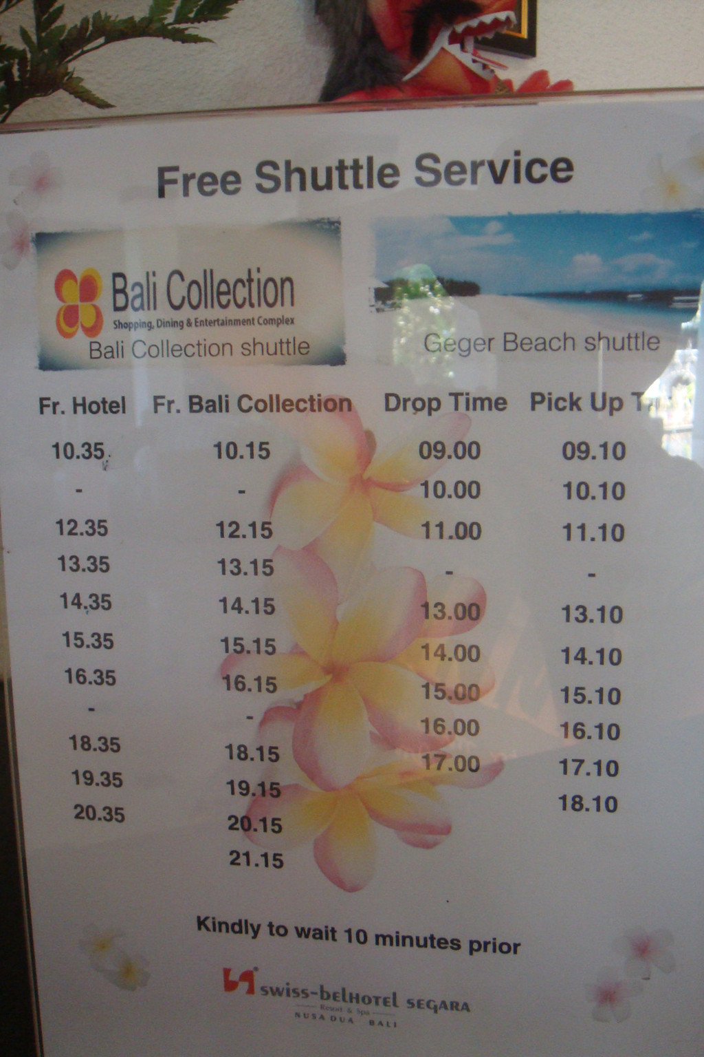 Swiss酒店有免费的摆渡车送住在这里的客人去沙滩,除此之外还有去购物中心的班车,这里有时间表哦,想住在这里的人可以参考一下哦。