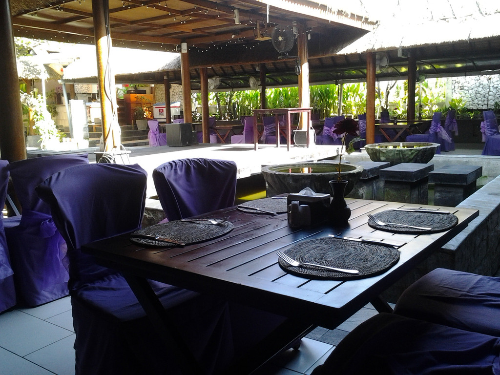 这家餐厅位置在巴厘岛算得上比较独特了,因为它是建在湖上的,而湖泊的周围是大片的红树林。中午炙热的阳光晒着大地,我们坐在湖边的凉亭中用餐,徐徐清风从湖面上吹来,感觉凉爽清新,食欲也会大增。