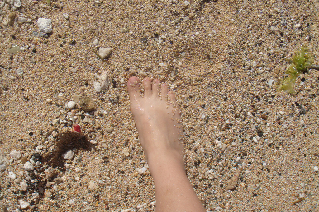 这是我在本文中唯一的出镜,大脚丫走四方,哈哈。沙子都是圆圆的颗粒,很漂亮。