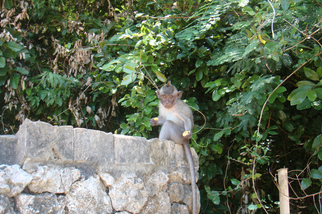 要去乌鲁瓦图庙的话,首先要经过一个有很多猴子的地方。那里的猴子很会和人讨吃的,虽然看着乖巧可爱,不过那一双滴溜溜转的眼睛,你要是被他盯上了,就要小心了。